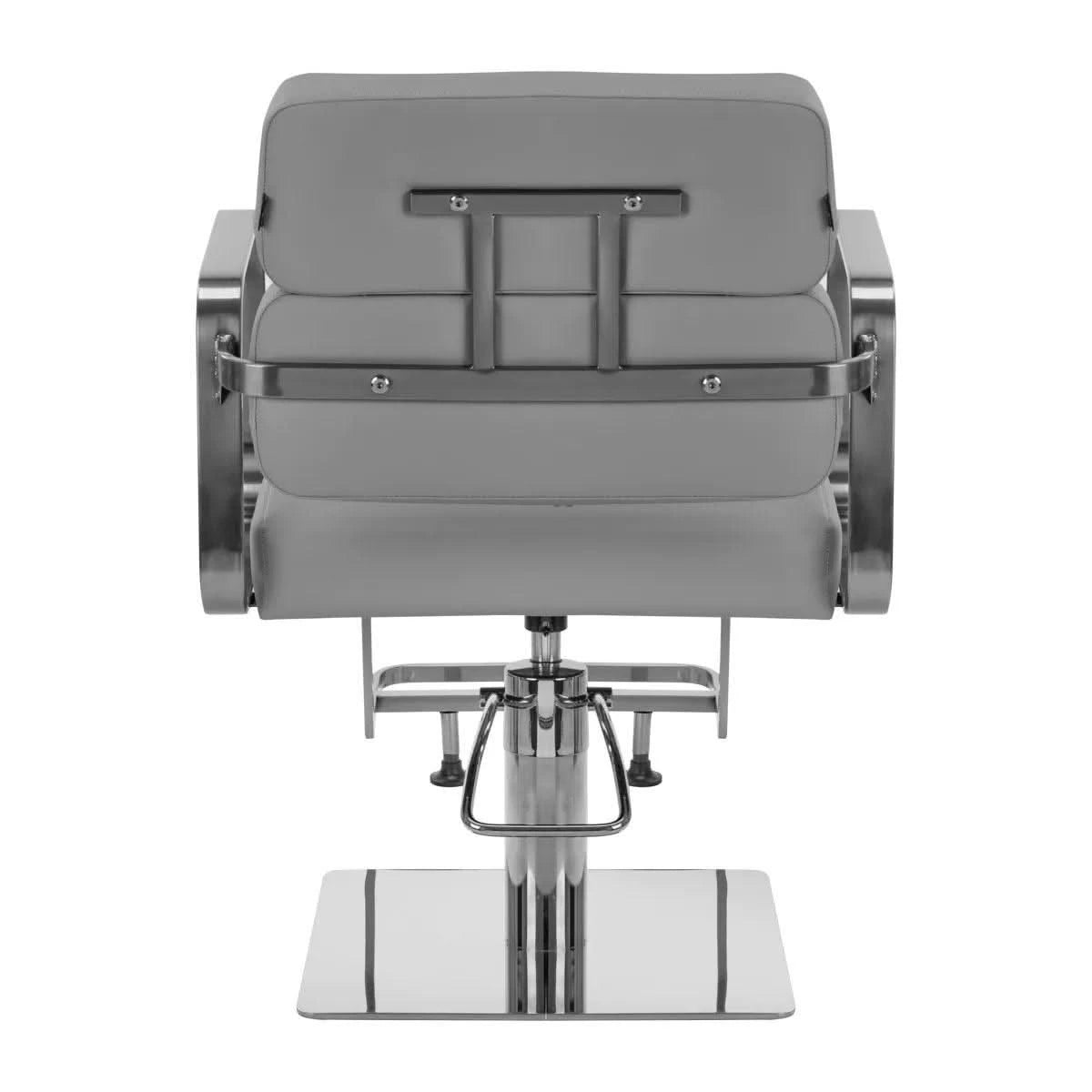 Dėl visiško kėdės sukimosi mechanizmo kirpėjo darbas tampa efektyvesnis ir patogesnis. Tvirtas, plokščias, kvadrato formos pagrindas užtikrina stabilumą naudojantis kėde. Matinis, lygus paviršius suteikia elegantišką išvaizdą ir leidžia lengvai palaikyti švarą. Patogi sėdynė su porolono užpildu užtikrina aukštą naudojimo komfortą net ir atliekant daug valandų trunkančias procedūras. Geometriniai, metaliniai porankiai leidžia teisingai nustatyti kliento pečių padėtį, todėl daug lengviau atlikti tikslias procedūras, įskaitant plaukų kirpimą. Šiam modeliui skirta stilinga pėdų atrama užtikrina stabilią atramą naudotojo kojoms.