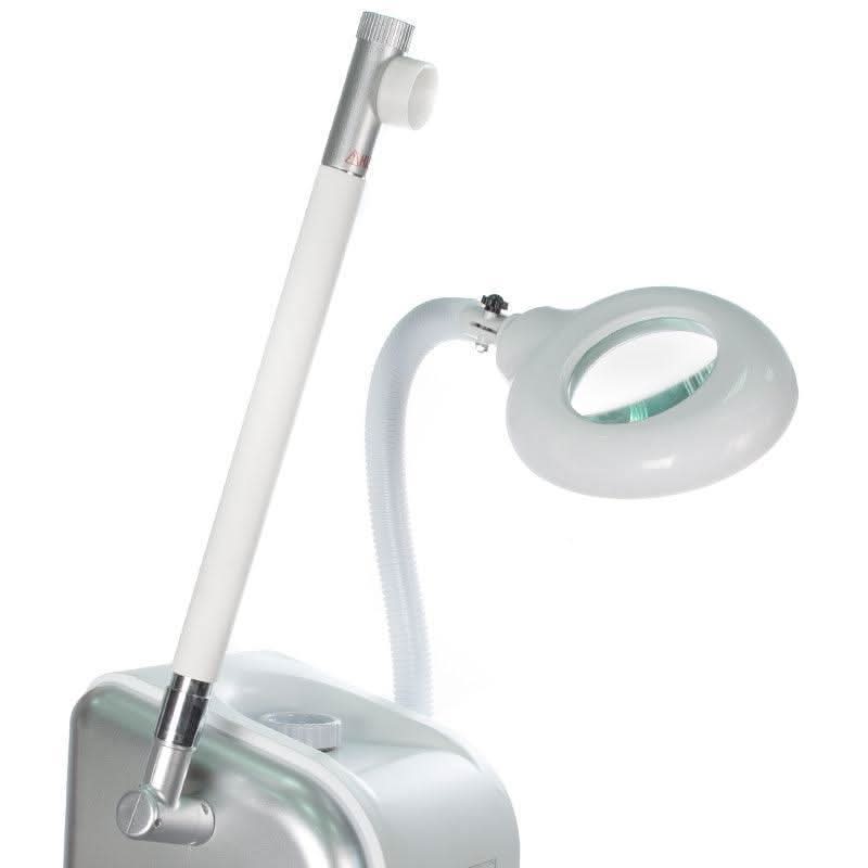14. Lempa su didinamuoju stiklu - lengvai montuojama ir įrengiama, didinamoji lempa turi aukštos kokybės lūžtamąjį didinamąjį stiklą ir įmontuotą apšvietimo sistemą, leidžiančią puikiai diagnozuoti odą. Lempos galvutė yra ant strėlės, todėl ją lengviau nustatyti tam tikru atstumu ir aukštyje. Lempa užtikrina patogumą atliekant kosmetines procedūras.