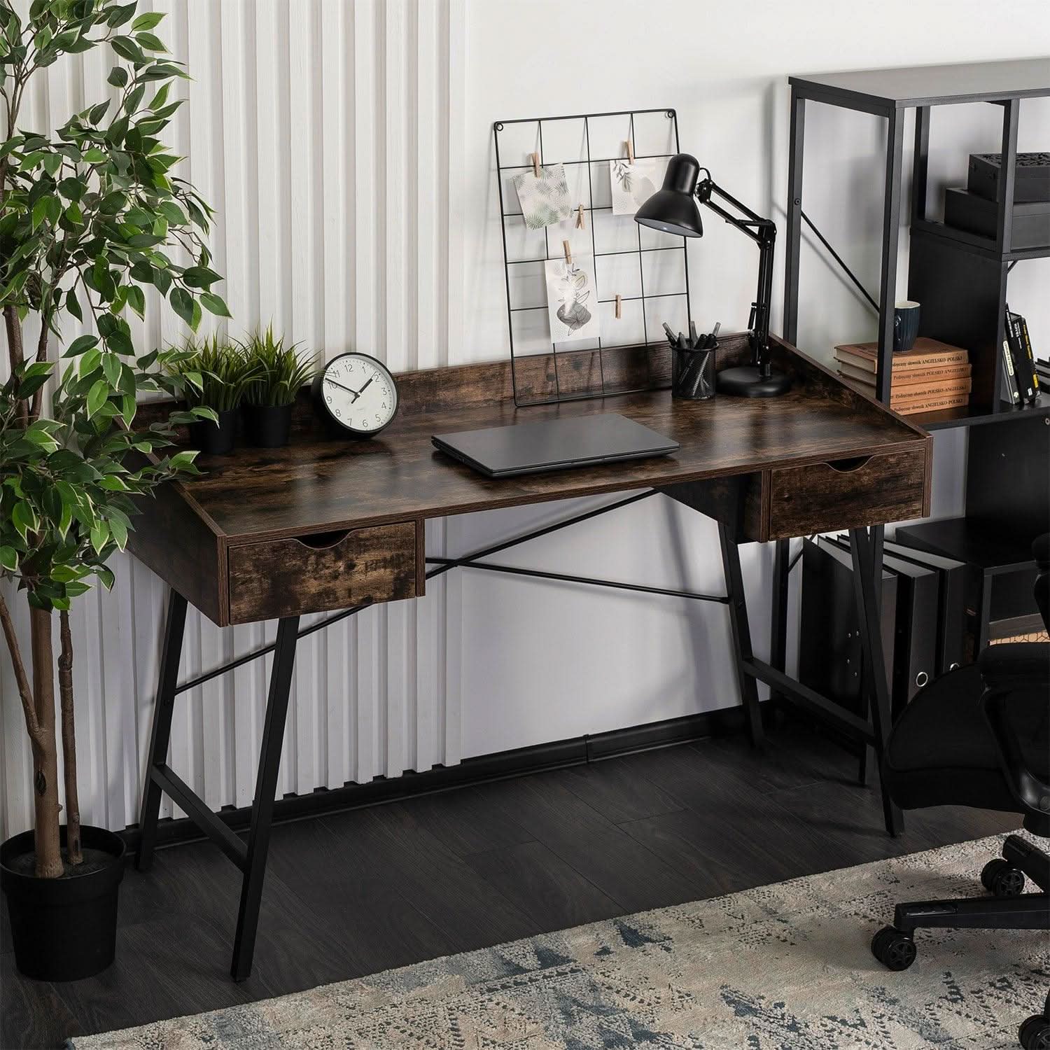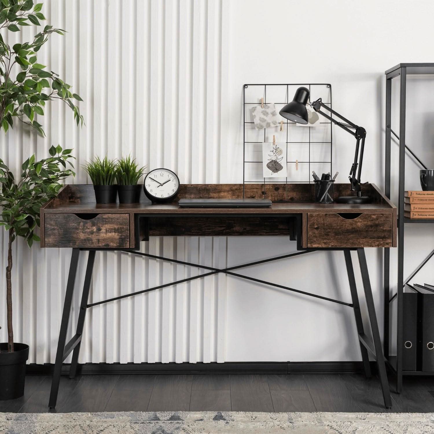 Rašomasis stalas ICE su stalčiais – ąžuolas / juoda – šiuolaikinis lofto stiliaus funkcionalumas