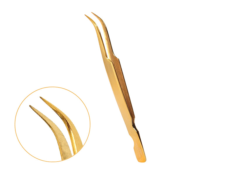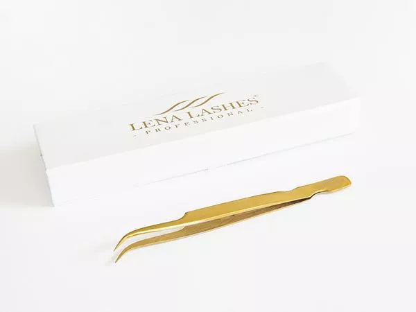 Lena Lashes Professional Užlenktas Auksinis Pincetas 013