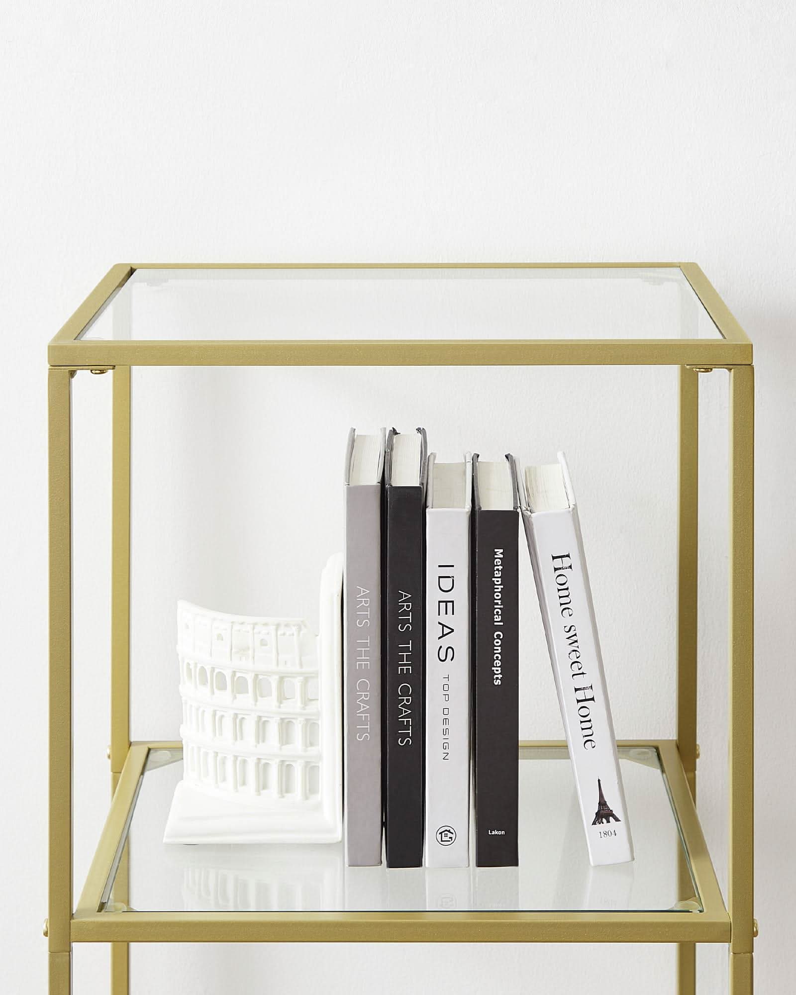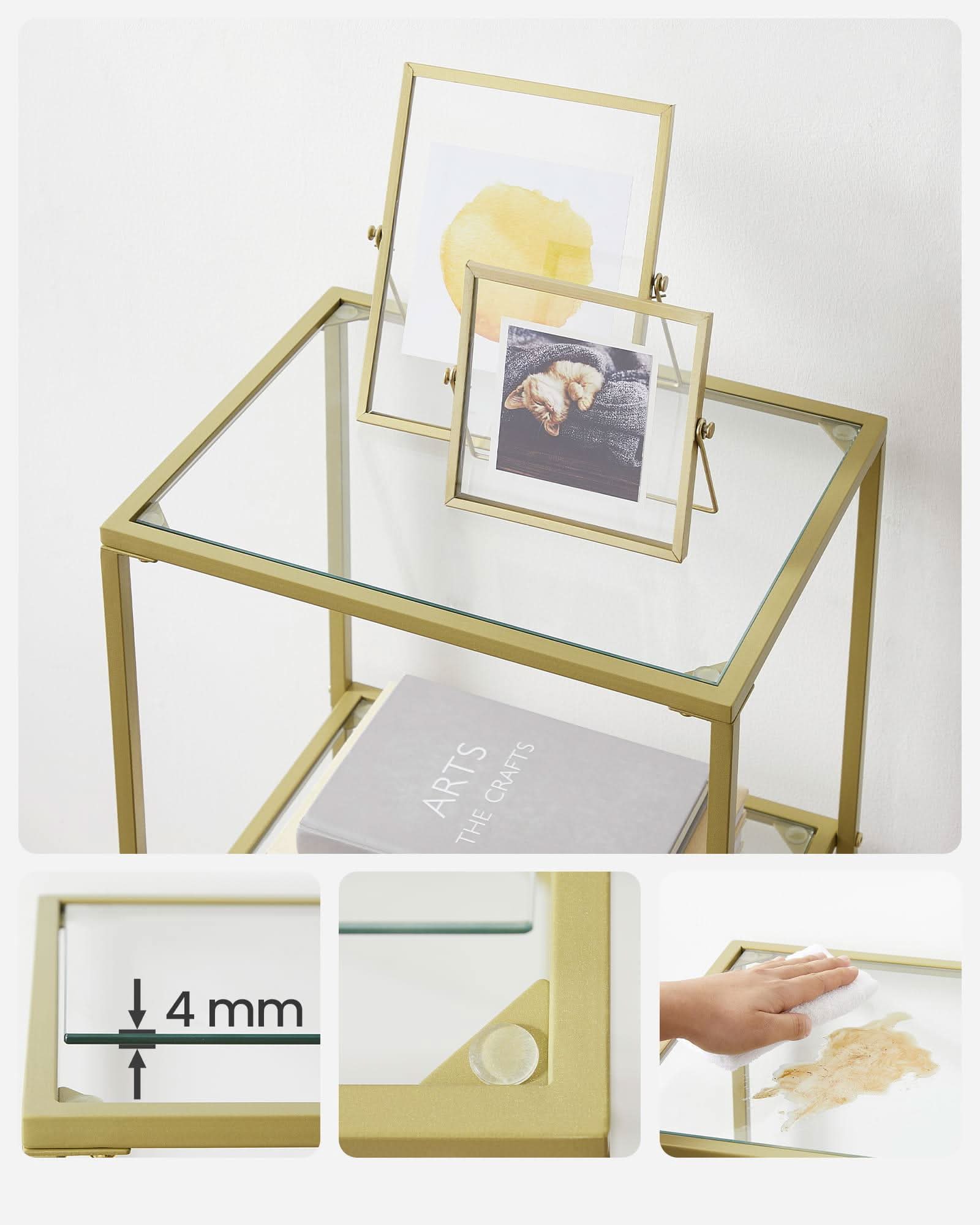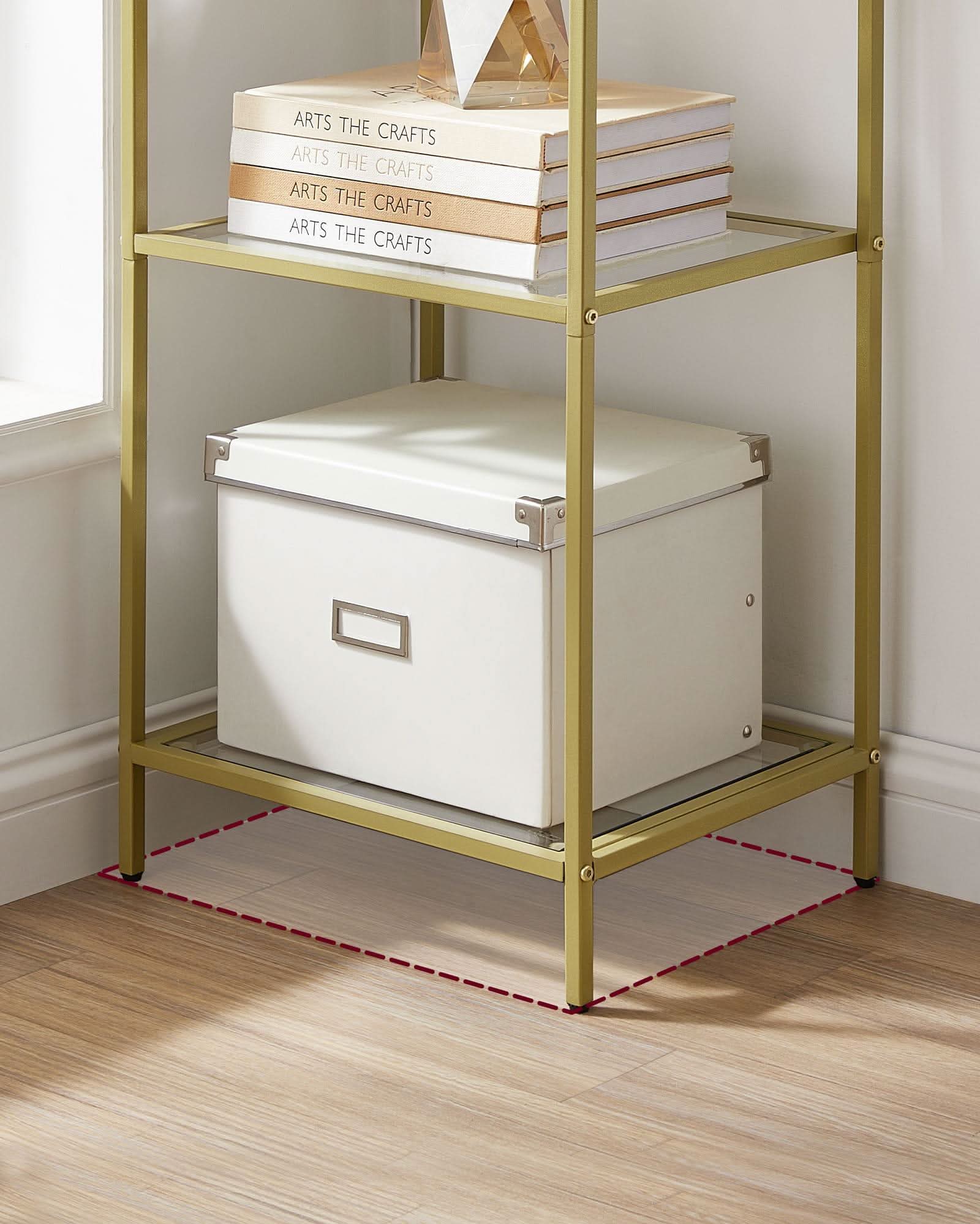 Lentyna pagaminta iš stiklo ir aukso milteliais dengto metalo. Produktas sukuria nuostabią jūsų kambario puošmeną. Lentynos yra stabilios, todėl ant jų galite sudėti knygas, gėles vazose, dekoratyvines figūrėles, vaikiškus žaislus, nuotraukų rėmelius.