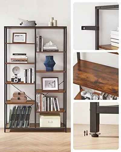 Dviguba lentyna, pagaminta industriniu stiliumi. Lentynos yra stabilios, todėl ant jų galime statyti knygas, gėles vazose, dekoratyvines figūrėles, vaikų žaislus ir nuotraukų rėmelius. Pasižymi universalumu ir funkcionalumu, ji puikiai tiks svetainėje, miegamajame, prieškambaryje ar biure, o 9 lentynos padės mums lengviau pasiekti mėgstamus daiktus. Industrinio stiliaus lentyna yra naujausia mados tendencija. Ji tikrai tiks prie daugelio kambarių interjero. Plieninė konstrukcija užtikrina baldo stabilumą. Puikiai priderinti rėmo elementai ir rudų atspalvių lentynų išdėstymas suteiks žavesio jūsų interjerui.