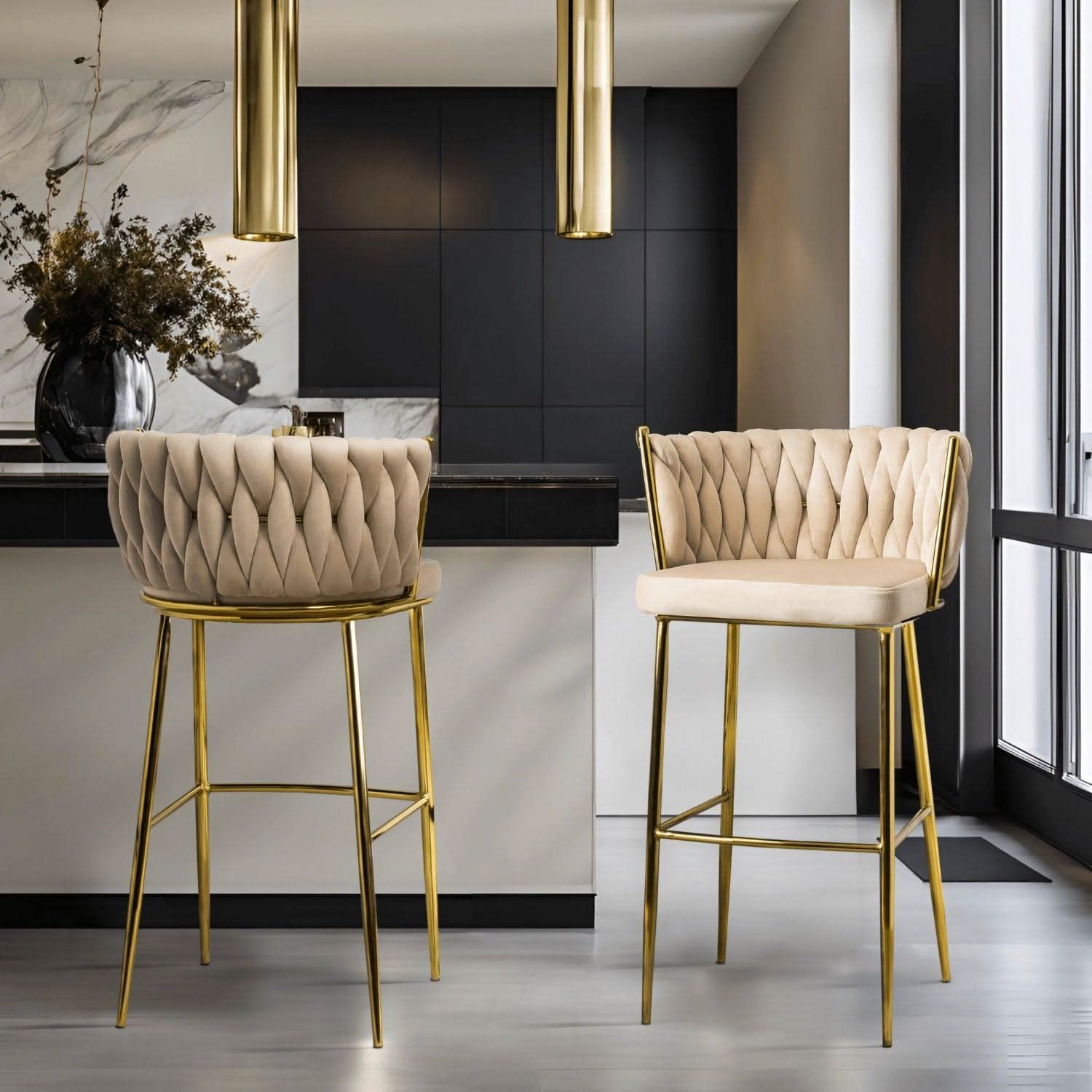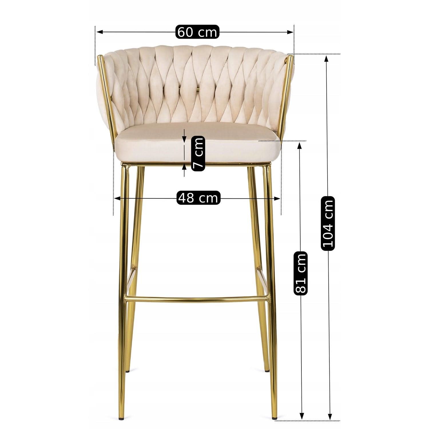 Keturios auksinės spalvos metalinės kojelės užtikrina ne tik stabilumą, bet ir rafinuotą vizualinį vaizdą. Kojeles jungia skersinis pakojis, kuris suteikia papildomą komfortą sėdėjimo metu. Metalinė konstrukcija garantuoja ilgalaikį naudojimą ir atsparumą kasdieniams pažeidimams.