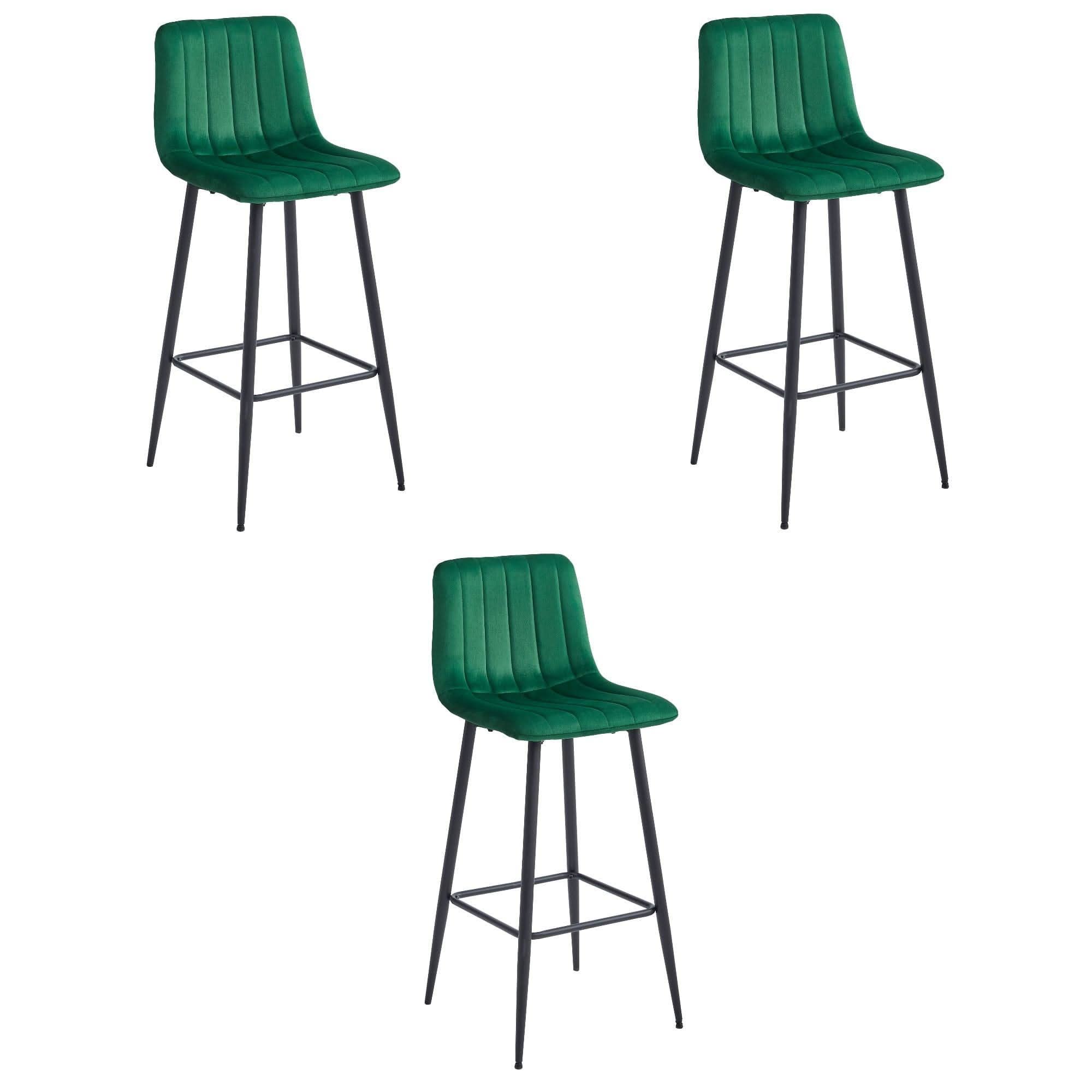Makiažo kėdės POZZA, tamsiai žalias aksomas/juodos kojos, 3 vnt.