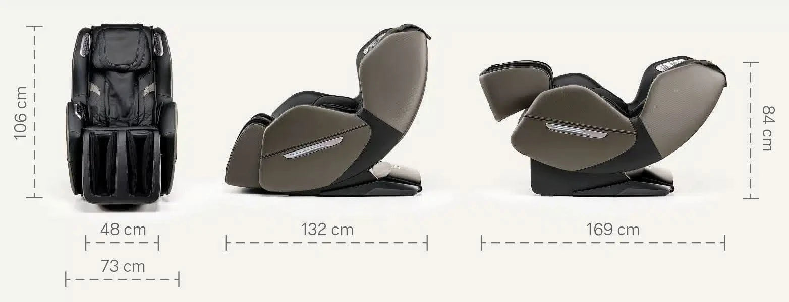 • Matmenys: 132 x 73 x 106 cm (sėdint), 169 x 73 x 84 cm (gulint)