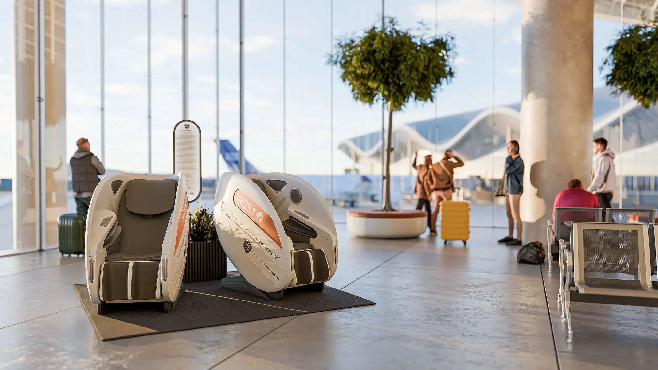 iRest R-Pass (T103) yra unikalus masažo krėslas, sukurtas atsipalaidavimo zonoms viešose erdvėse. Jo išskirtinis bruožas – futuristinis kapsulės formos dizainas, po kuriuo slepiasi pažangios masažo technologijos. Svarbu tai, kad krėslo atlošimo pozicija ir įdubusios šoninės dalys leidžia vartotojui mėgautis be rūpesčių atsipalaidavimu su saugumo ir privatumą suteikiančiu jausmu, net ir labai užimtose vietose.
