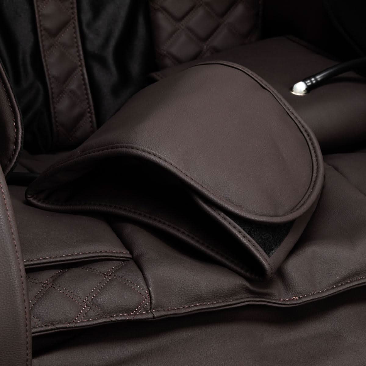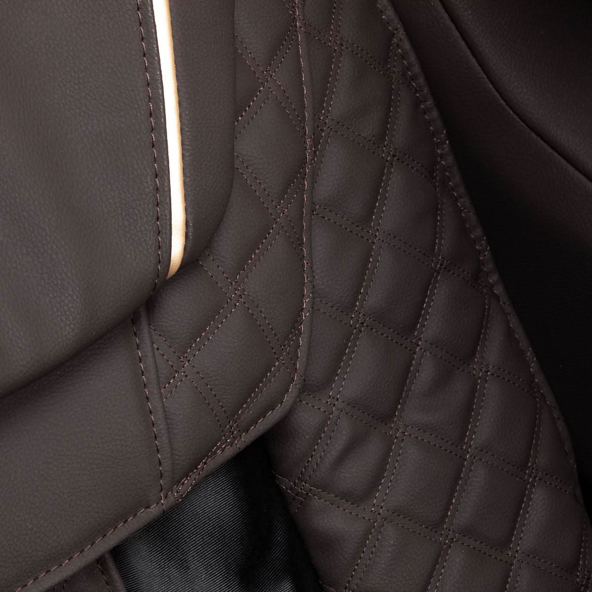 Krėslo vidus aptrauktas malonia liesti dirbtine oda, kurios spalva – tamsiai ruda. Ši medžiaga pasižymi dideliu atsparumu drėgmei ir lengvu valymu, todėl užtikrina naudojimo patogumą. Medžio imitacijos sintetinės odos derinys su tekstūruota medžiaga išorinėse krėslo dalyse patraukia akį, suteikdamas visumai originalią ir elegantišką išvaizdą. Kruopščiai atliktos siūlės pabrėžia stilingą dizainą, o tvirta konstrukcija užtikrina ilgaamžiškumą. Kompaktiškas modelis su estetiška apdaila puikiai tiks bet kokiame interjere. Masažinis krėslas Sakura 306A – puikus sprendimas atsipalaiduoti, ypač po sunkios dienos ar intensyvios treniruotės.