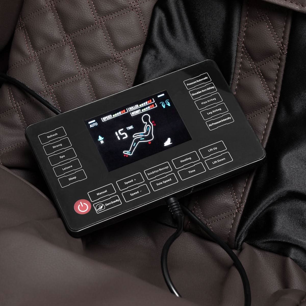 Aiškus valdymo pultas su LCD ekranu užtikrina paprastą ir intuityvų krėslo valdymą. Pultą galima patogiai laikyti ant dešiniojo porankio laikiklio arba rankose. Ryškus ekranas rodo esamą prietaiso veikimą, įskaitant masažuojamas kūno vietas, masažo intensyvumą, procedūros laiką ir pasirinktą programą. Valdymo pultas leidžia tiksliai reguliuoti krėslo nustatymus ir masažo funkcijas, taip pat pasirinkti seanso trukmę, kuri gali būti 5, 10, 15, 20, 25 arba 30 minučių.