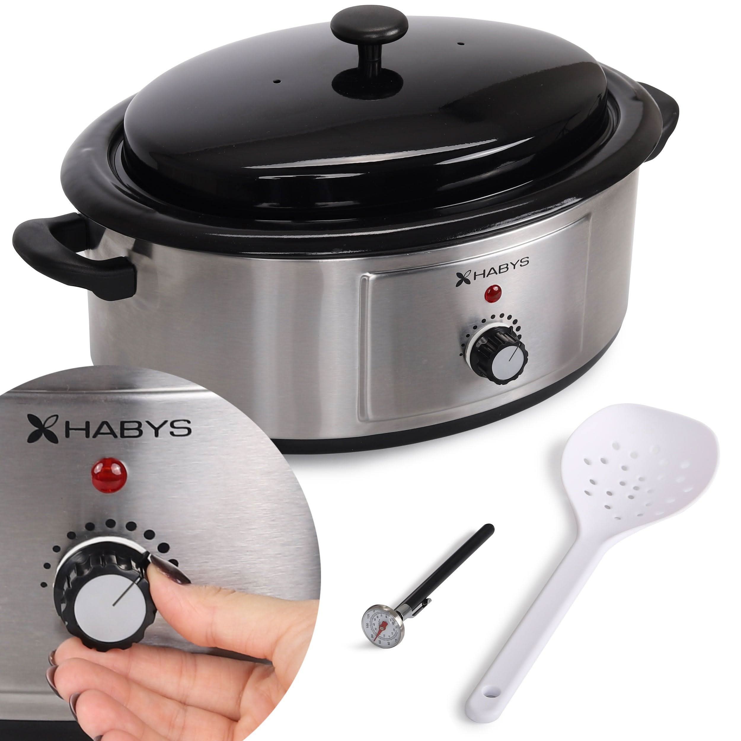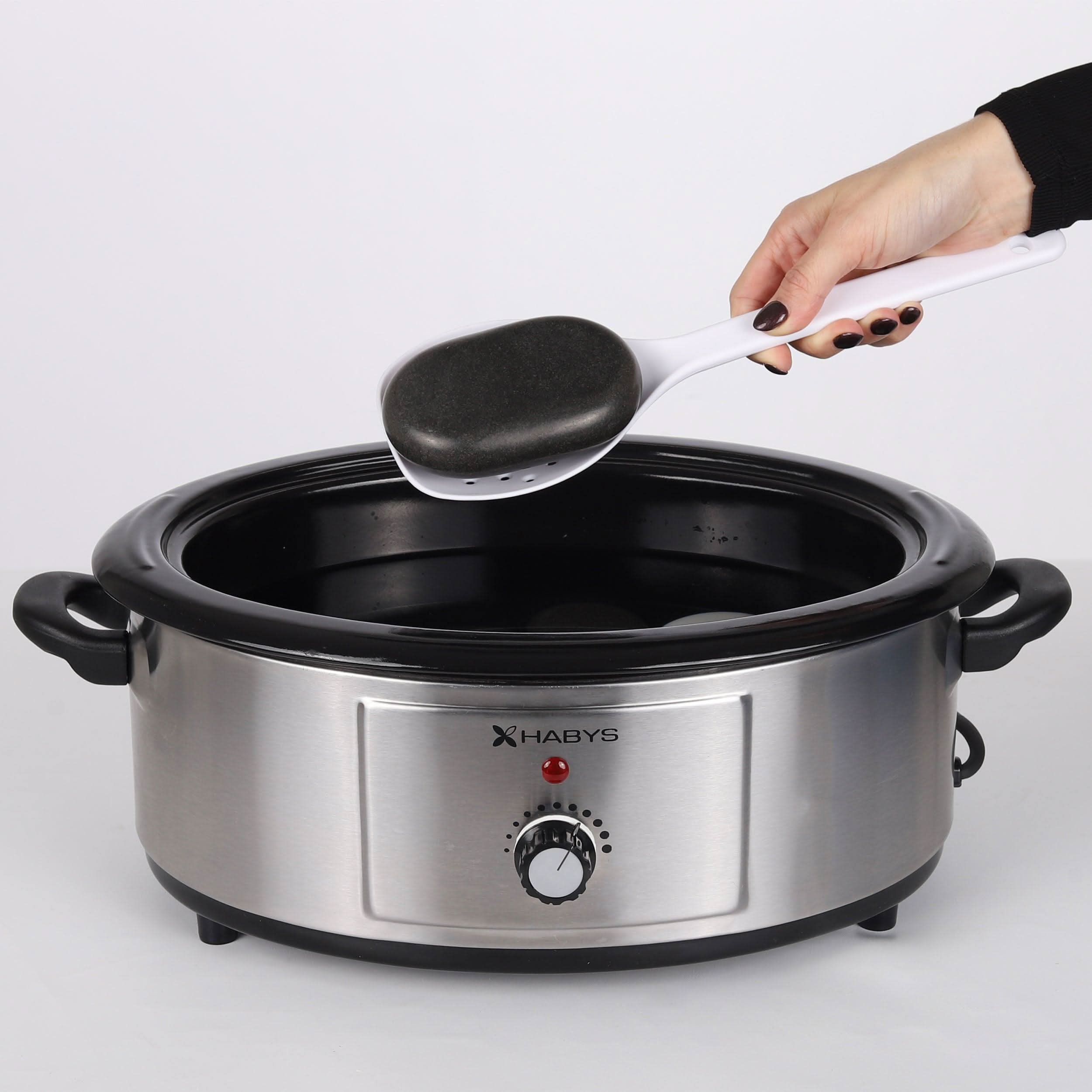 Profesionalus 6 litrų talpos masažinių akmenų šildytuvas. Šildytuve yra termostatas, kuris palaiko nustatytą temperatūrą.