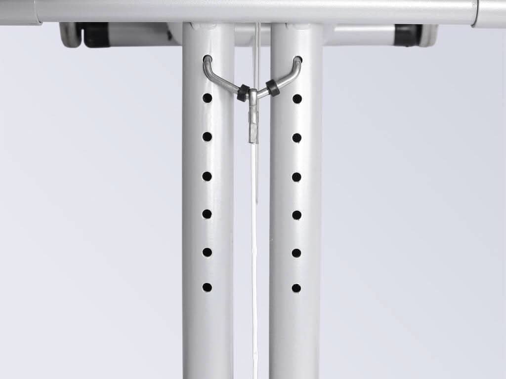 Reguliuojant kėdės aukštį, galima reguliuoti sėdynės išdėstymą kelių atramų atžvilgiu, atsižvelgiant į paciento kūno sudėjimą.