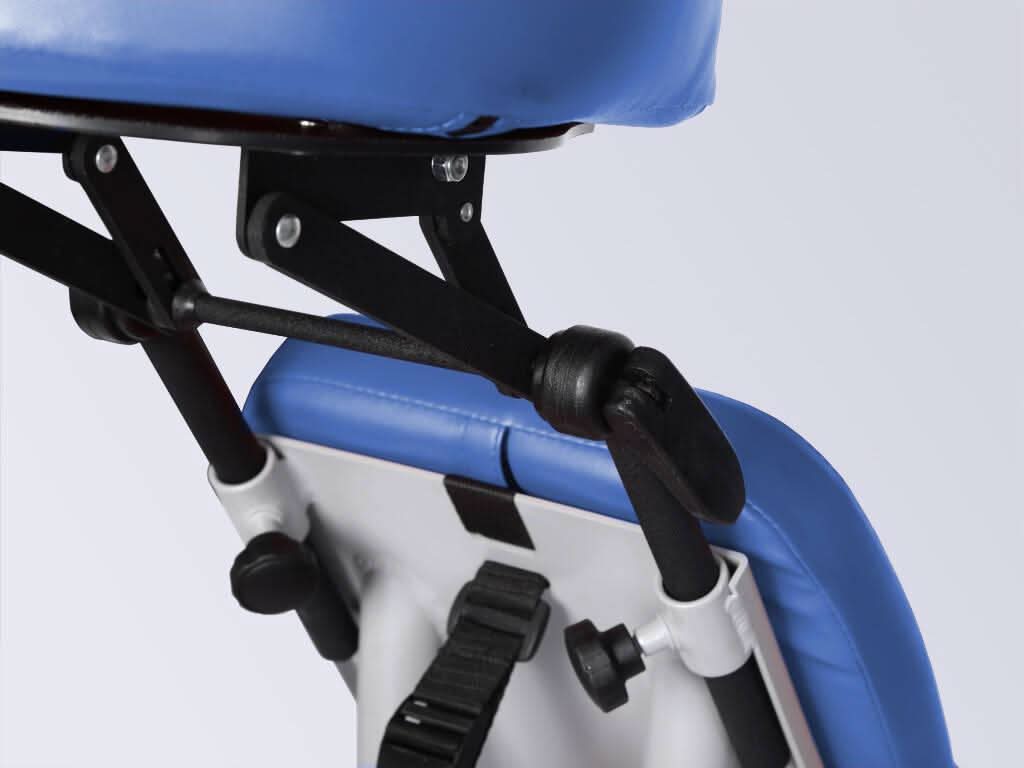 Kėdėje galima įvairiapusiškai reguliuoti galvos atlošą ir porankį, taip pat plačiai reguliuoti sėdynės aukštį ir pasvirimo kampą. Galimybė pritaikyti kėdę pagal kiekvieno paciento laikyseną palengvina priėjimą prie atitinkamų raumenų grupių, padidina gydymo efektyvumą ir paciento komfortą. Kėdės konstrukcija leidžia masažą atlikti beveik bet kokiomis sąlygomis. Įrenginį sumontuoti lengva ir patogu, o procedūroms atlikti reikia nedaug vietos. Specialūs transportavimo ratukai užtikrina efektyvų transportavimą, o įsigiję specialų dangtelį galėsite juos papildomai apsaugoti transportavimo metu.