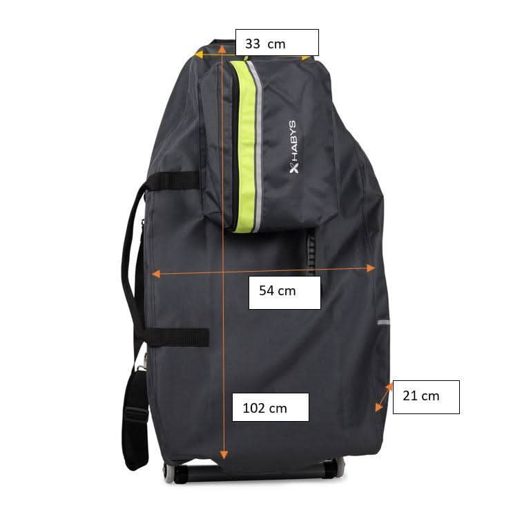 Dėklas turi erdvią kišenę, diržą per petį, patogią rankeną, kad būtų lengva transportuoti, ir specialią išpjovą, leidžiančią kėdę transportuoti ant ratukų.