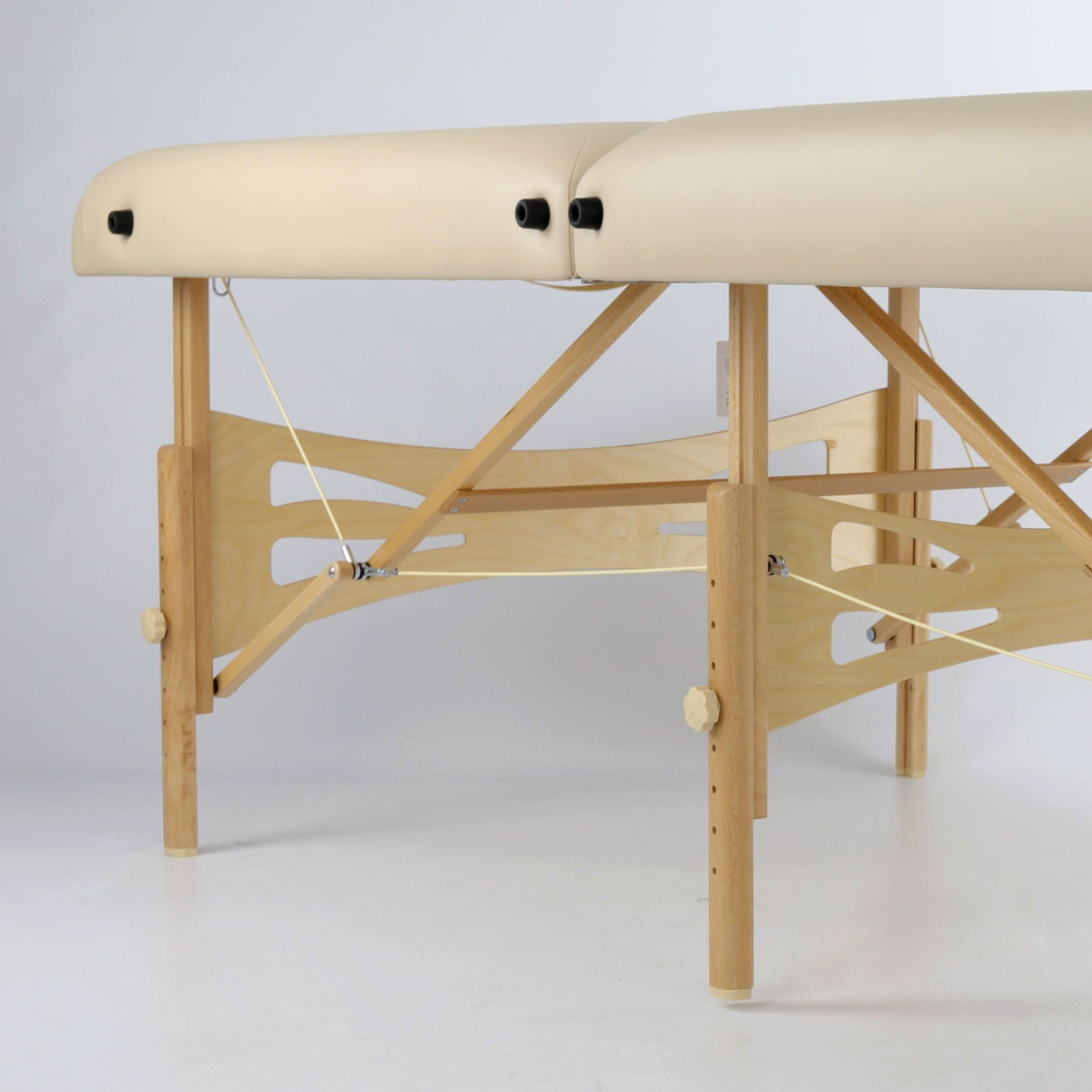 INTEGRAL stalas pasižymi labai patogia, erdvia sėdyne ir dideliu stabilumu, kurį užtikrina sustiprinta buko medienos konstrukcija su trimis poromis kojų. Šie sprendimai, viena vertus, užtikrina patogumą pacientui, kita vertus, aukštą darbo komfortą terapeutui, kuris, iš anksto nustačius stalo stalviršio aukštį, gali laisvai ir saugiai užimti įvairias kūno padėtis terapinio seanso metu, kad galėtų veiksmingai atlikti terapiją, išlaikydamas biomechanikos principus. Pacientas gali patogiai gulėti visose reikiamose konfigūracijose - ant nugaros, priekyje ar ant šono, o prireikus terapeutas, be kita ko, gali saugiai: atsisėsti ar atsiklaupti šalia paciento ant stalo.