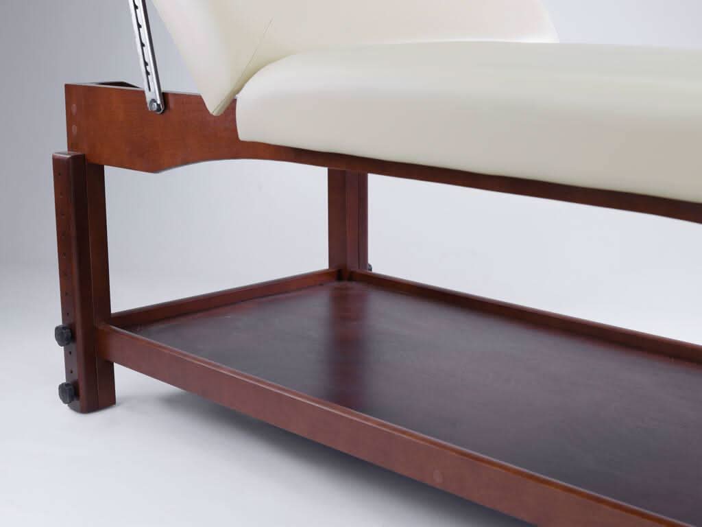 Speciali putų sudėtis suteikia pacientui visišką komfortą procedūros metu ir leidžia jam visiškai atsipalaiduoti. Reguliuojamas galvos atramos atlošas suteikia galimybę jį naudoti įvairiais tikslais. Natūrali buko mediena ir masyvus viršus su užapvalintais kampais suteikia kušetei modernią ir patrauklią išvaizdą.