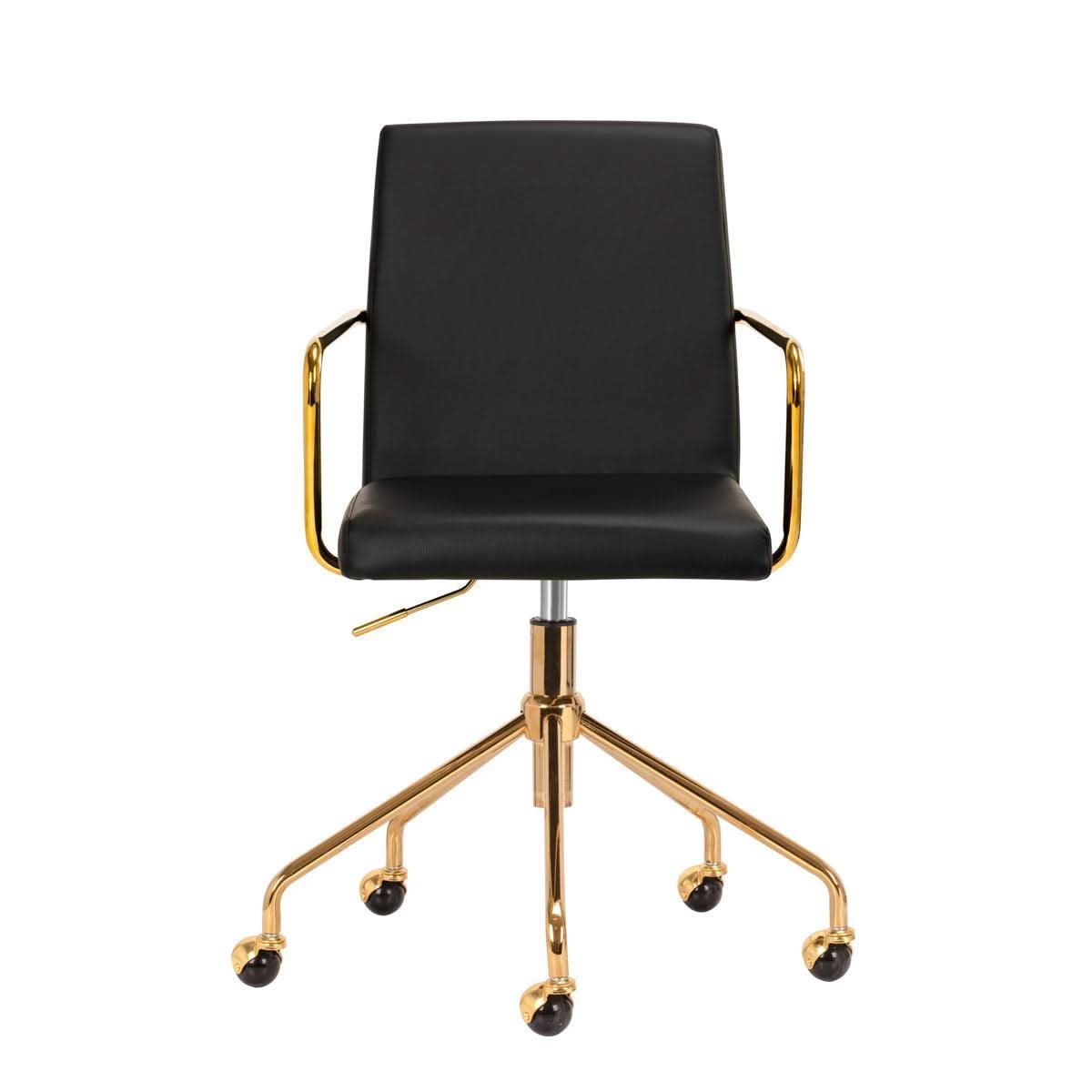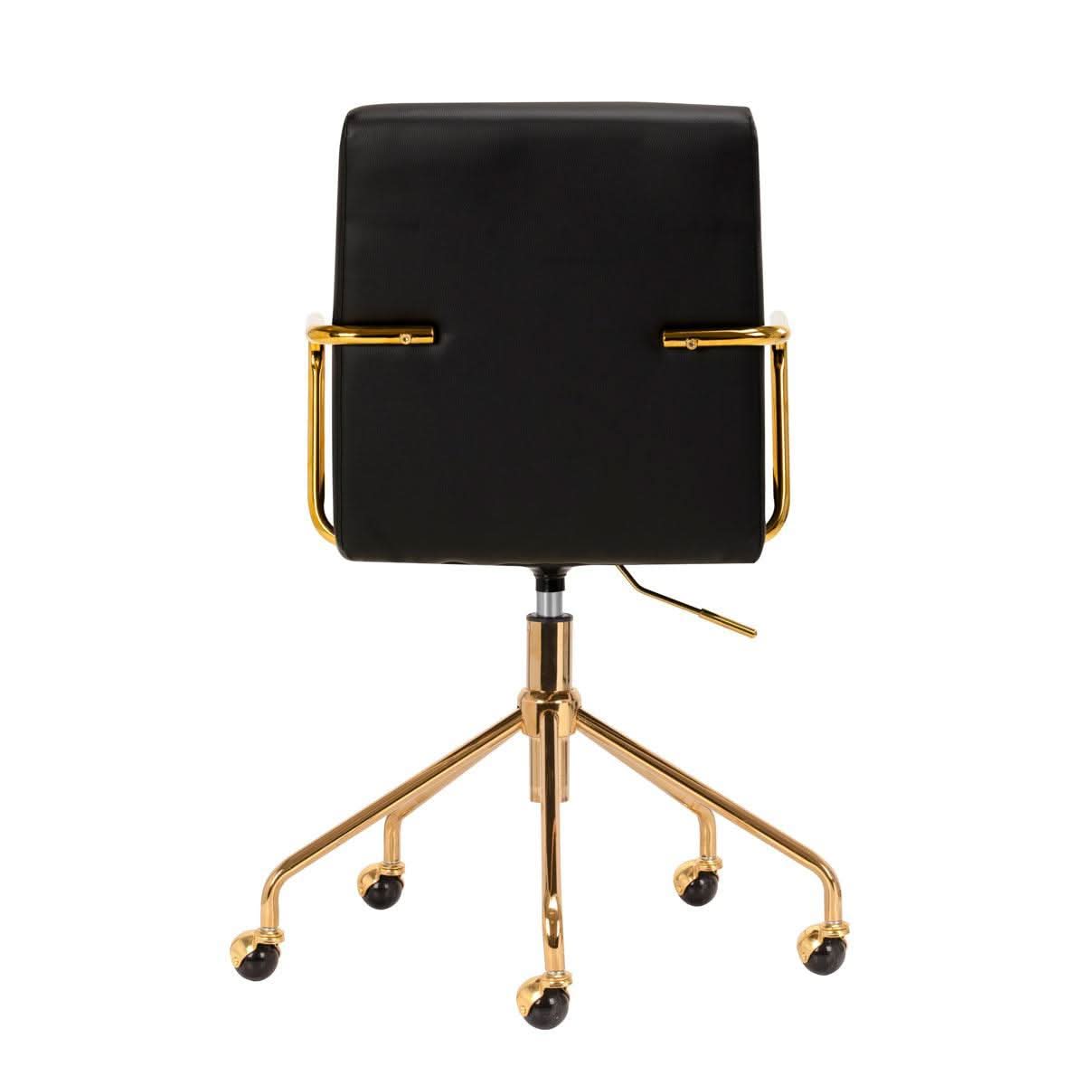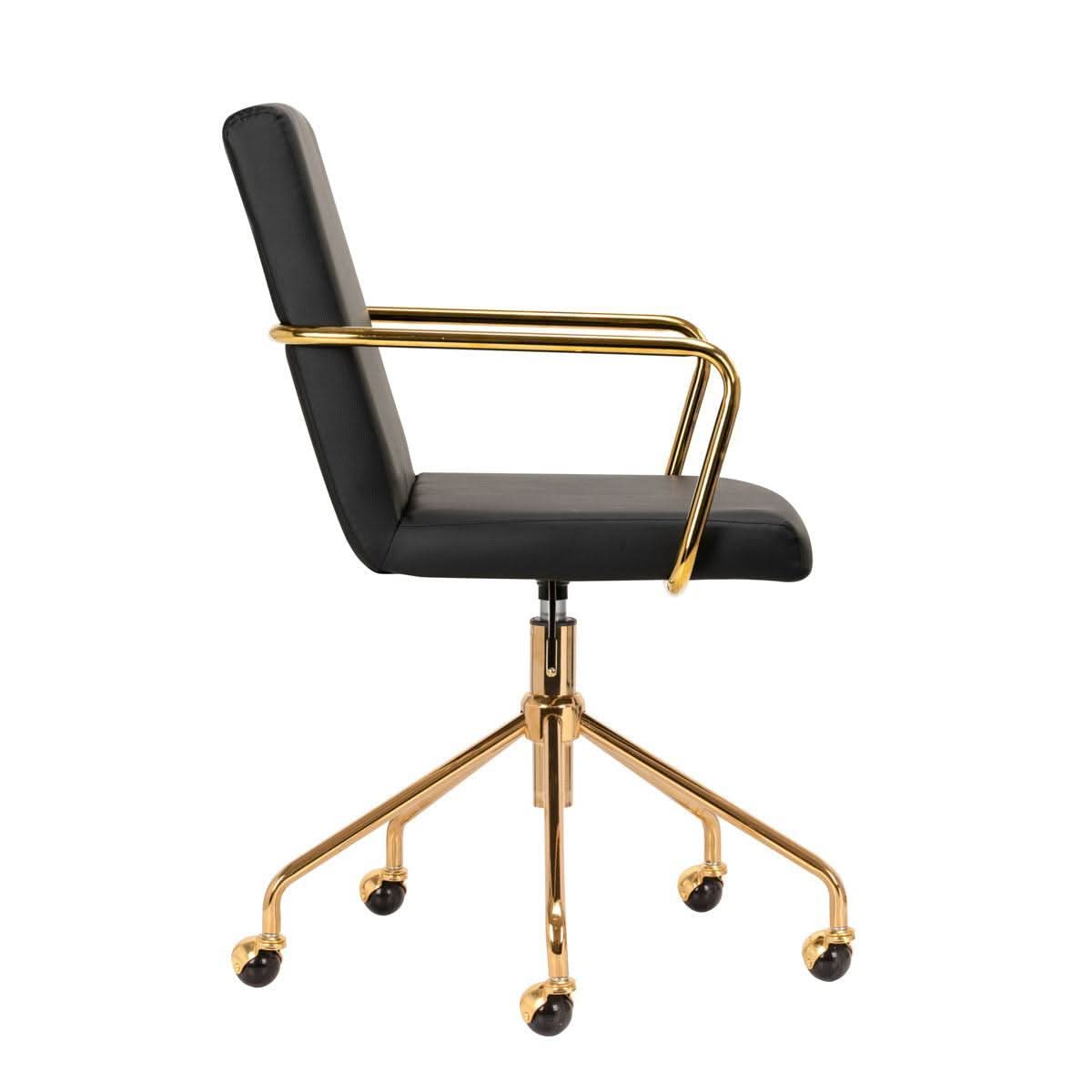 Malonus liesti, įvairių atspalvių sintetinės juodos odos apmušalai suteikia baldams unikalų charakterį. Dėl elegantiškos apdailos baldai traukia akį. Aukso atspalvių rėmas suteikia elegancijos, puikiai derantis prie paprastų formų. Funkciniai ratukai užtikrina didelį mobilumą, todėl dirbant lengviau perkelti kėdę ir judėti. Dėl estetikos, naudojimo patogumo ir ergonomiškai profiliuoto atlošo kėdė atitinka net reikliausių naudotojų reikalavimus.
