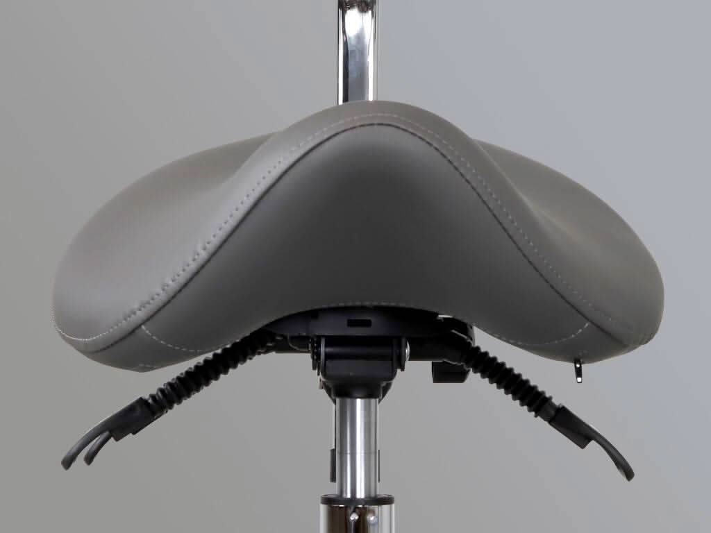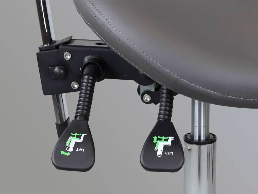 Ergonomiška balninė taburetė su atlošu ir pažangiu sėdynės bei atlošo reguliavimu. Profiliuota sėdynė užtikrina optimalų kūno svorio pasiskirstymą ir palengvina natūralios padėties užėmimą. Tvirta konstrukcija ir atlošas užtikrina visišką stabilumą. Ratukai leidžia sklandžiai judėti. Kėdutė turi aliuminio, chromuotą konstrukciją.