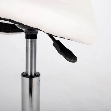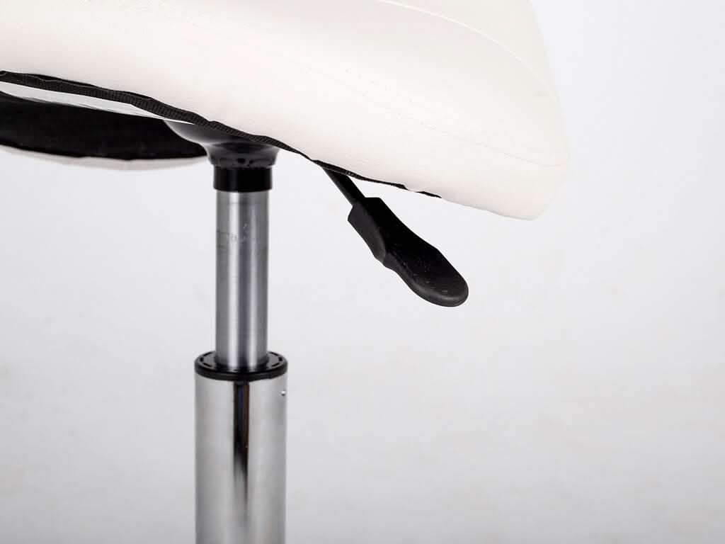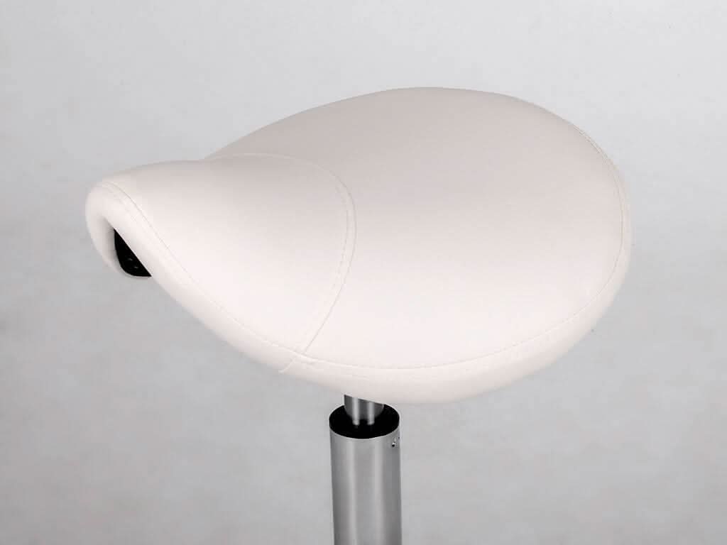 Ergonomiška kėdutė profiliuota balno formos sėdyne, patogiu aukščio reguliavimu naudojant dujinę spyruoklę ir ratukais. Balninė kėdutė padeda optimaliai paskirstyti kūno svorį ir palengvina natūralią sėdėjimo padėtį. Penkių stipinų blizgus chromuotas pagrindas suteiks elegancijos bet kokiam interjerui. Skirta masažo salonams, fizioterapijos, grožio ir kirpykloms.