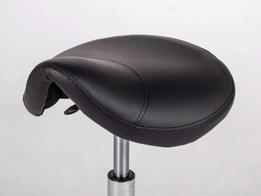 Ergonomiška kėdutė profiliuota balno formos sėdyne, patogiu aukščio reguliavimu naudojant dujinę spyruoklę ir ratukais. Balninė kėdutė padeda optimaliai paskirstyti kūno svorį ir palengvina natūralią sėdėjimo padėtį. Penkių stipinų blizgus chromuotas pagrindas suteiks elegancijos bet kokiam interjerui. Skirta masažo salonams, fizioterapijos, grožio ir kirpykloms.