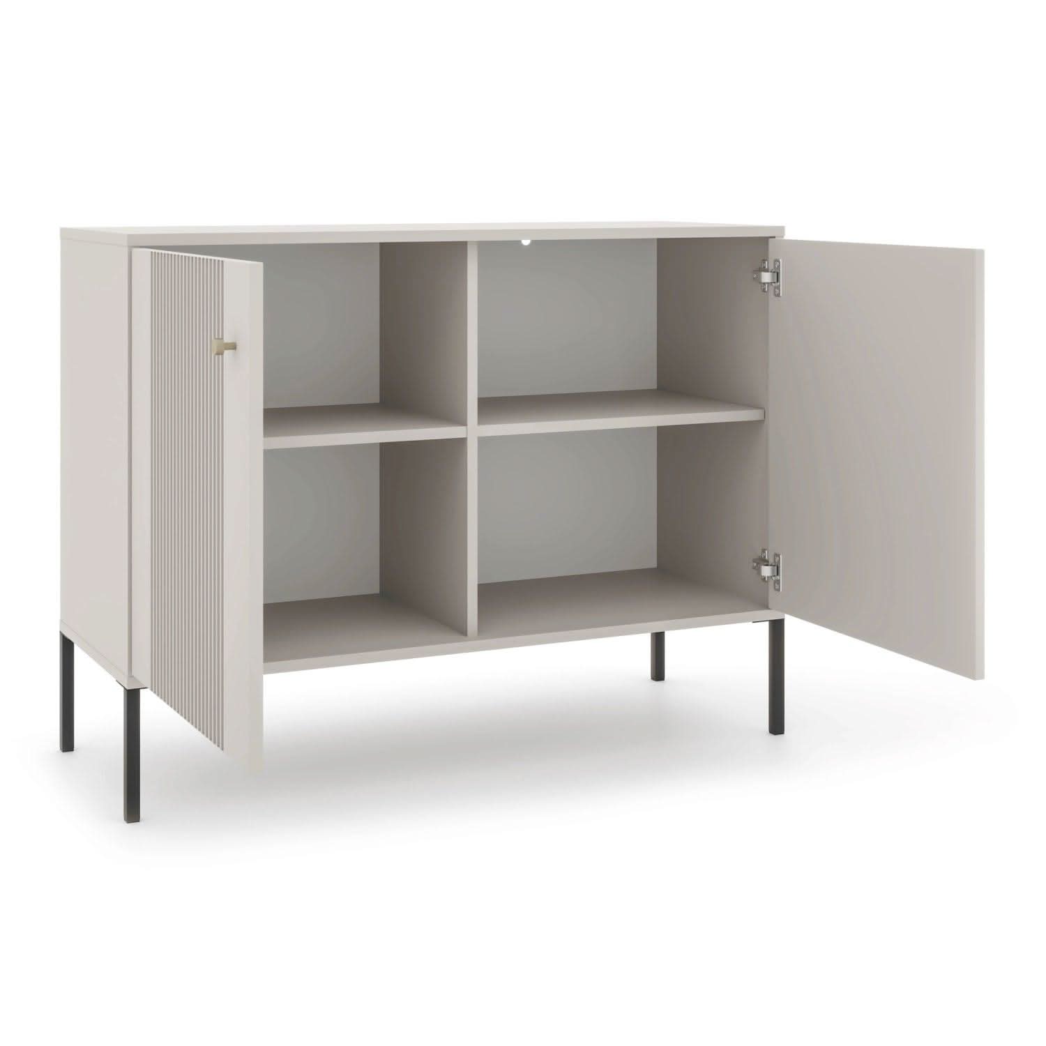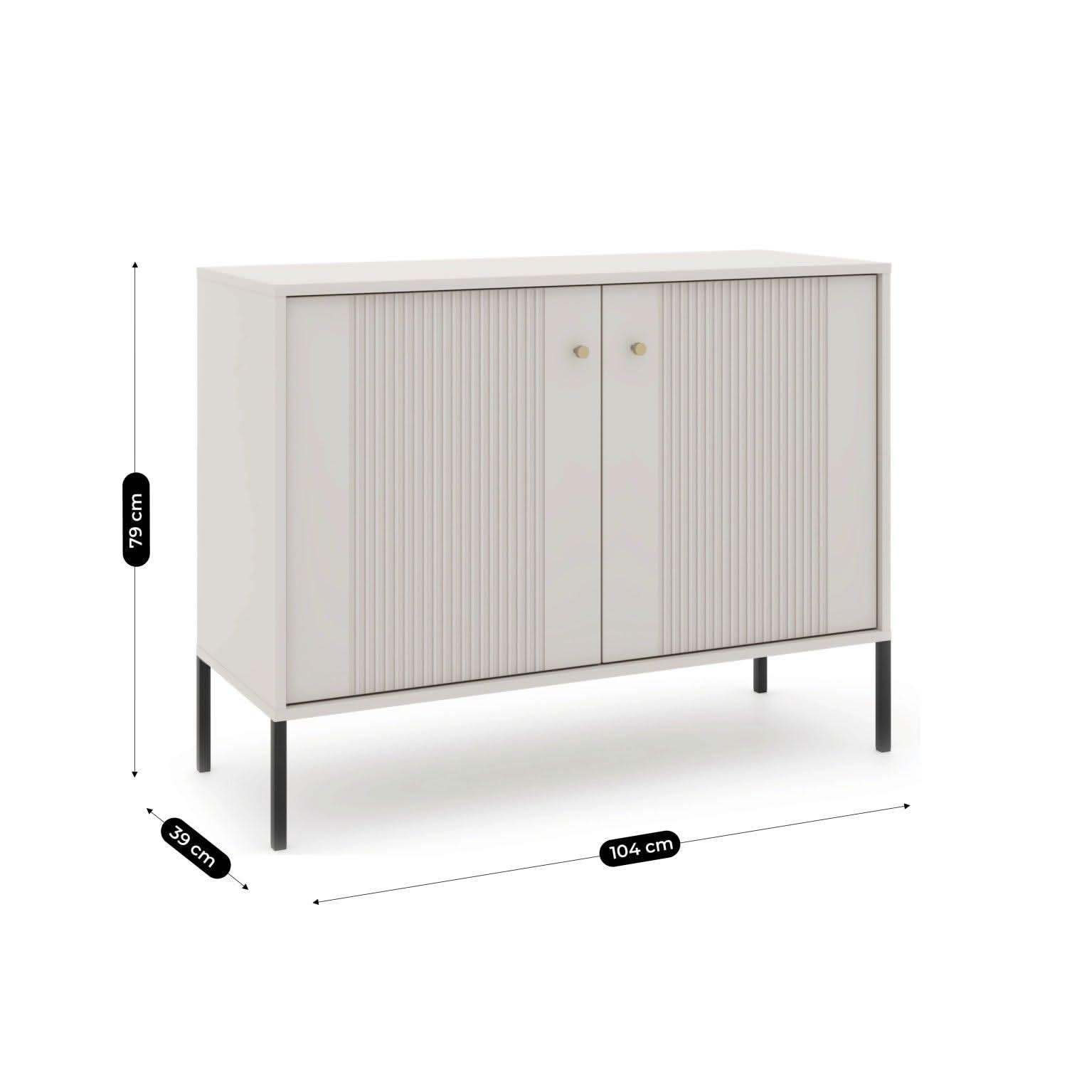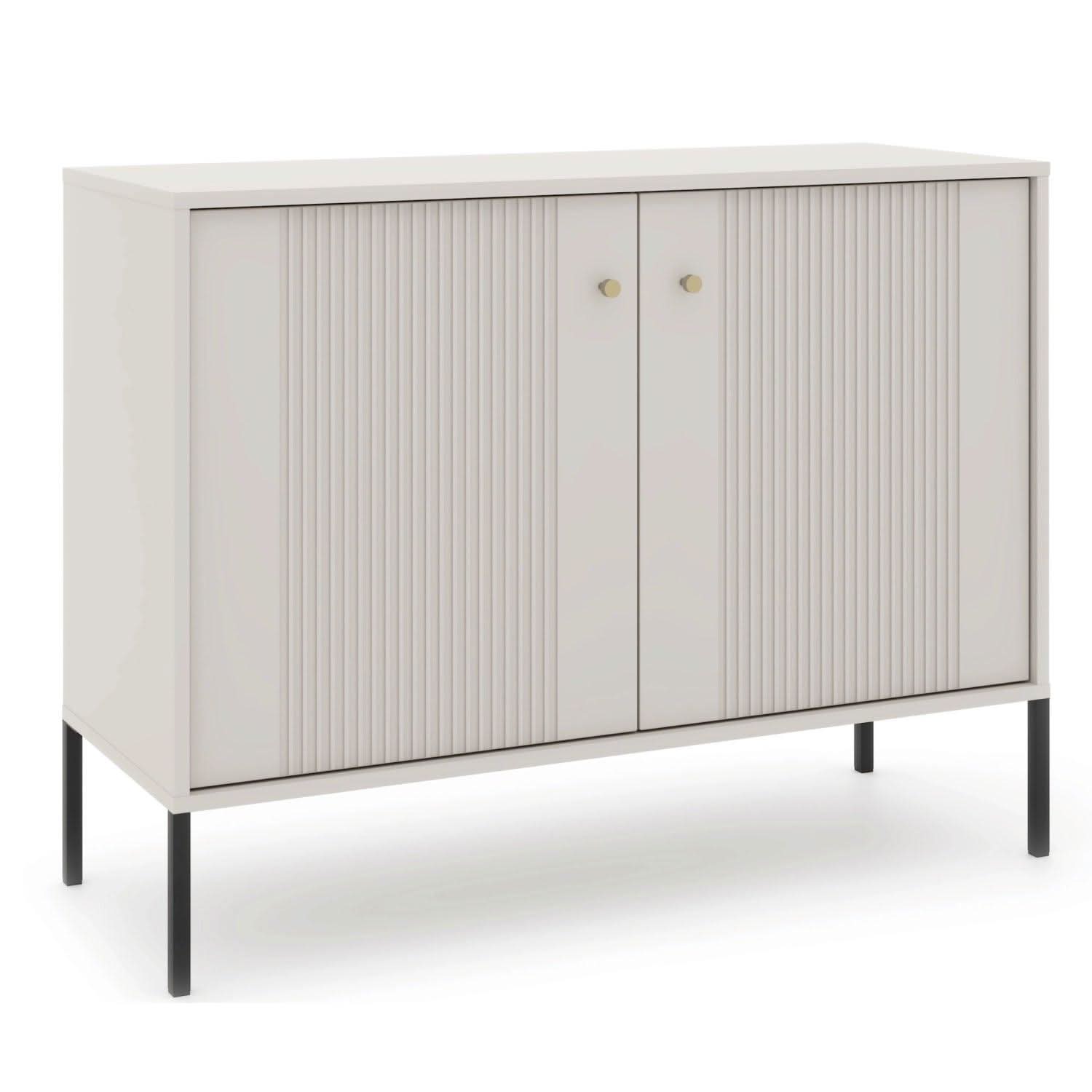 Soft komoda pieno spalvos yra puikus pasirinkimas žmonėms, vertinantiems funkcionalumo ir estetikos derinį. Jos paprasta, elegantiška forma ir matinė apdaila puikiai atitinka šiuolaikines interjero dizaino tendencijas. Dviejų durų komoda su grioveliais ir subtiliomis auksinėmis rankenomis suteikia daug vietos saugojimui, puikiai tinkančia namų aksesuarams, nuo knygų iki tekstilės.