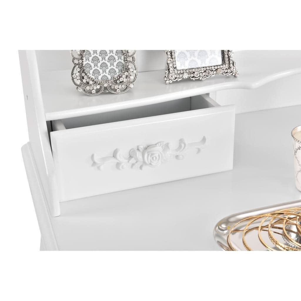 MIRA baltas kosmetinis staliukas su veidrodžiu, 4 stalčiais + kėdute