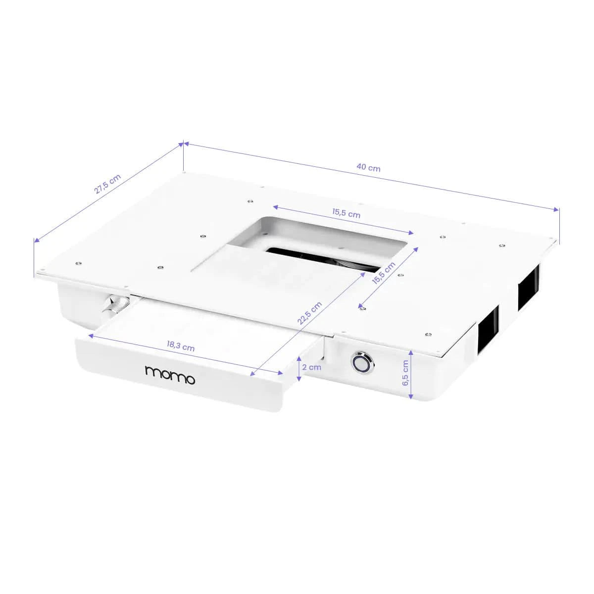 Į stalviršį įmontuotas kasetinis dulkių surinkėjas Momo J-02 žymiai pagerina darbo komfortą ir higieną, veiksmingai pašalindamas dulkes, susidarančias atliekant grožio procedūras, pavyzdžiui, manikiūrą. Dėka šio įrenginio, salono oras išlieka švarus, o darbo vieta – be taršos, o tai padidina tiek kosmetologo, tiek klientų saugumą. Dulkių surinkėjas yra lengvai naudojamas ir prižiūrimas, o tai dar labiau padidina jo funkcionalumą. Reguliarus valymas ir filtrų keitimas užtikrina nuolat aukštą absorbcijos efektyvumą.