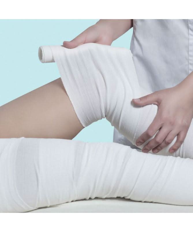 Tvarsčius vyniokite spiraliniu būdu nuo apačios į viršų – pradėkite nuo čiurnos ir vyniokite iki sėdmenų.