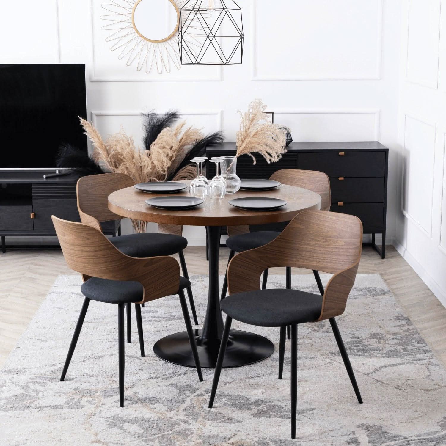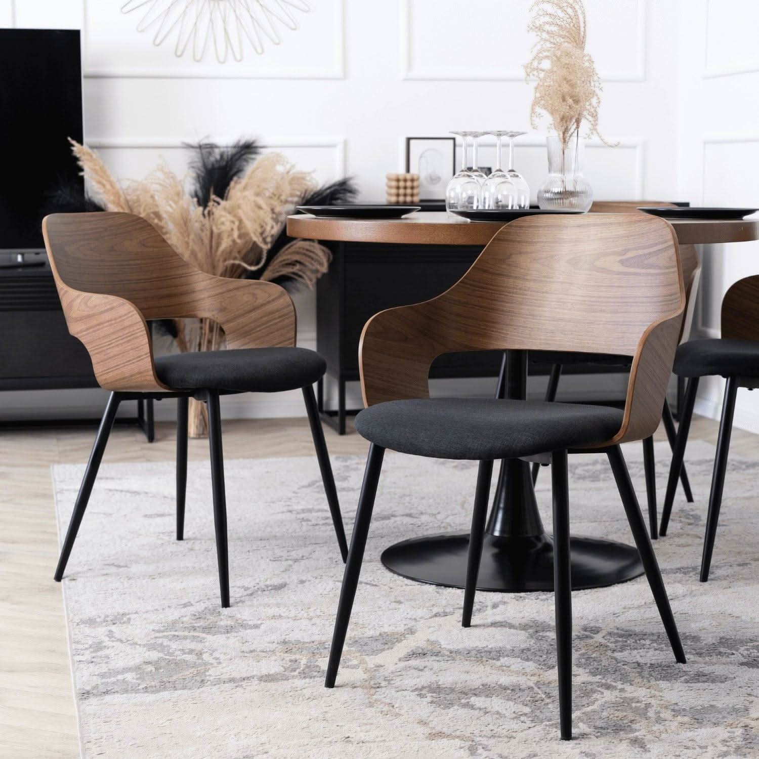 Krėslas ORBI – lenkta fanera, riešuto spalva / juodas metalas – lofto stiliaus akcentas