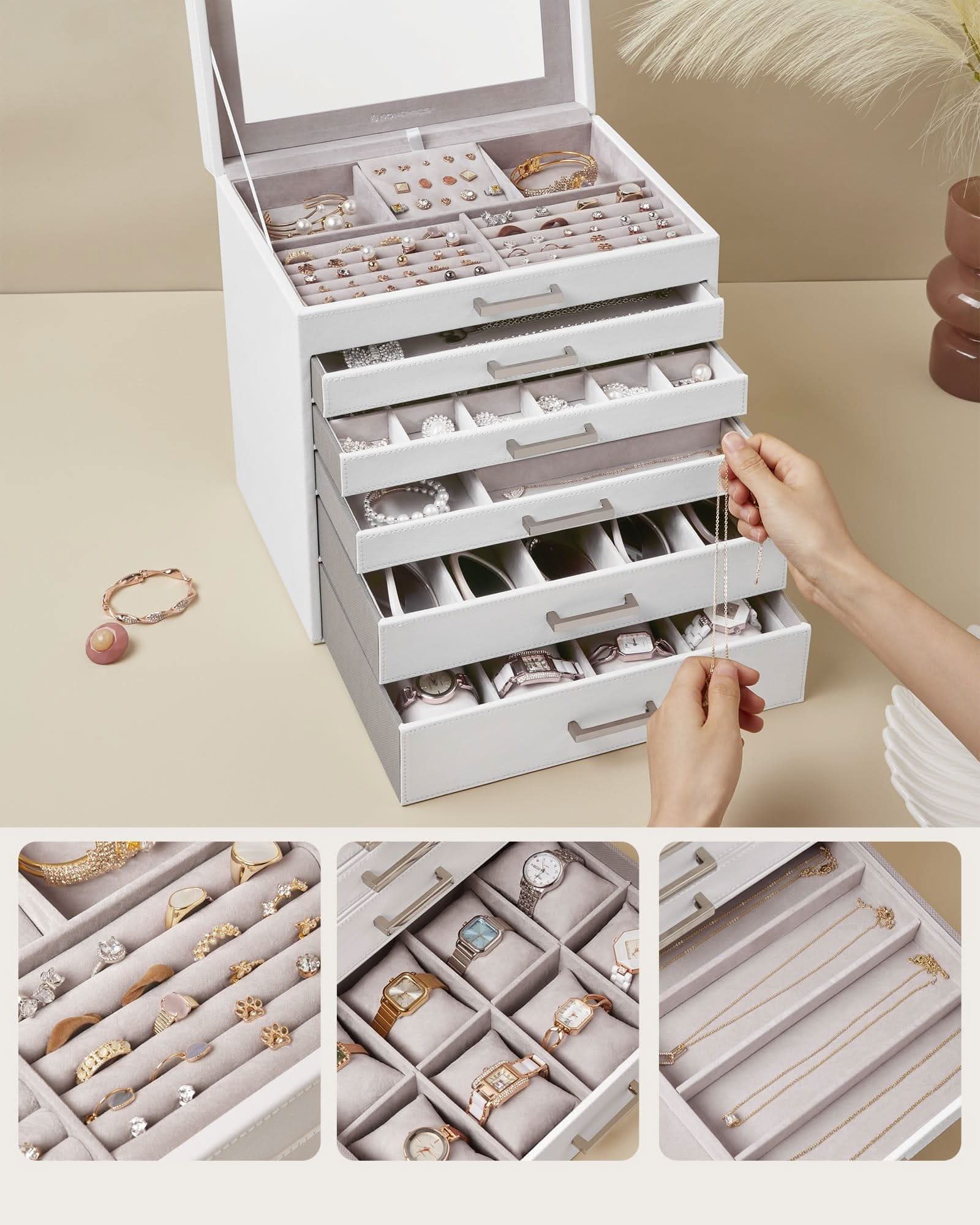 • praktiškas veidrodis, esantis ant viršutinio skrynelės dangčio