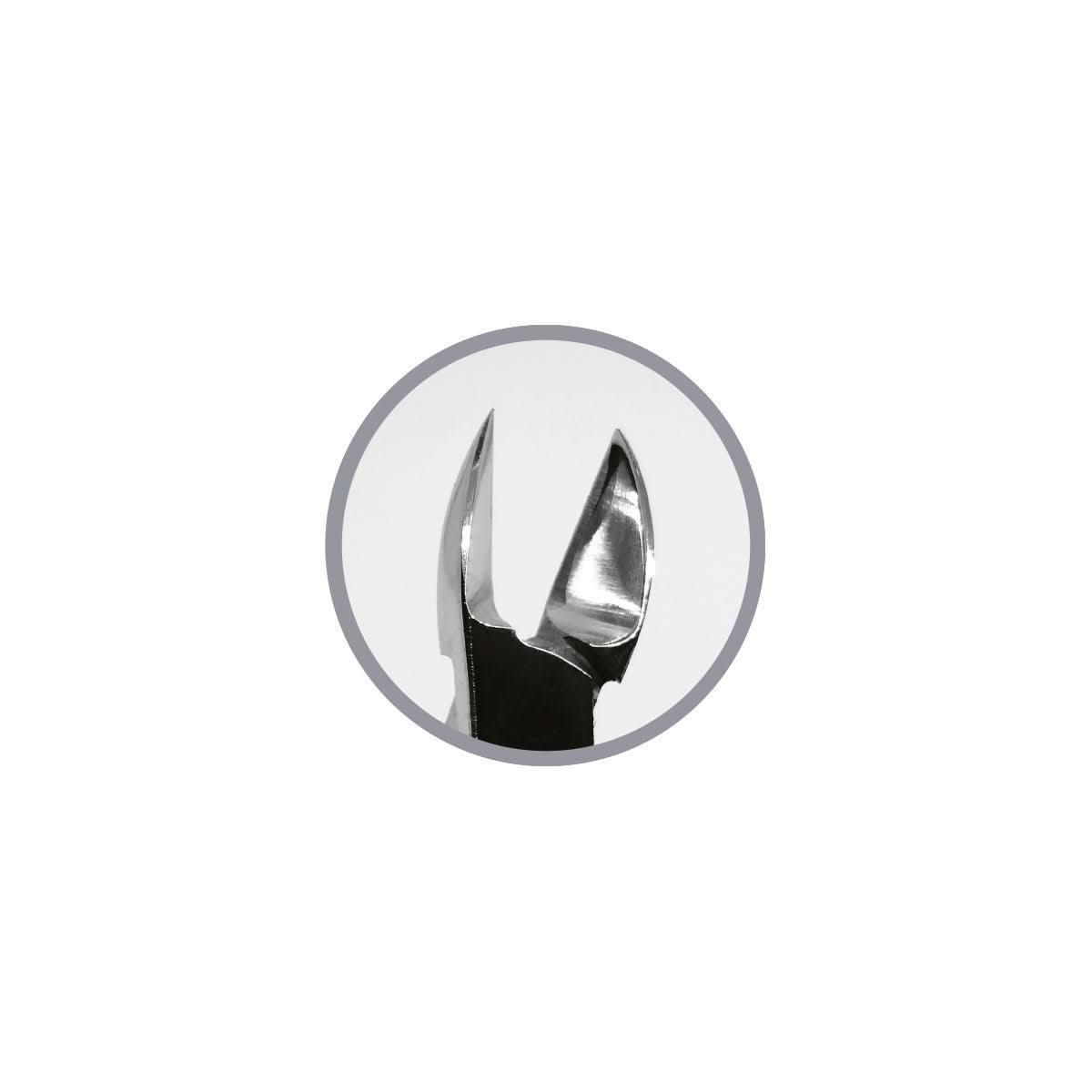 Labai tvirtai guli rankoje, todėl dirbti patogiau ir saugiau. Papildomas privalumas – nepaaštrintas antgalis, todėl žnyplės tinka naudoti namuose. Jomis galima trumpinti nagus vaikams ir rizikos grupės pacientams. Turi dviejų spyruoklių, apsaugotą mechanizmą. Parduodamos skardinėje dėžutėje, kad būtų apsaugotos transportuojant.