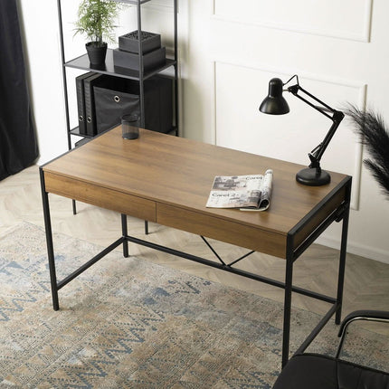 Rašomasis stalas ALLY su dviem stalčiais – Riešutas / Juoda