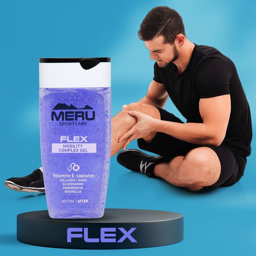 FLEX gelis yra greitai įsigeriantis lengvas masažinis gelis, kurį reikėtų įmasažuoti į odą raumenų ir sąnarių srityje ir aplink ją. Jo sudėtyje yra specialus šešių ingredientų derinys - gliukozaminas, chondroitinas, MSM, bosvelija, kolagenas, hialurono ekstraktas.