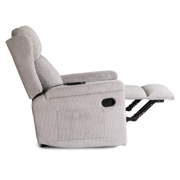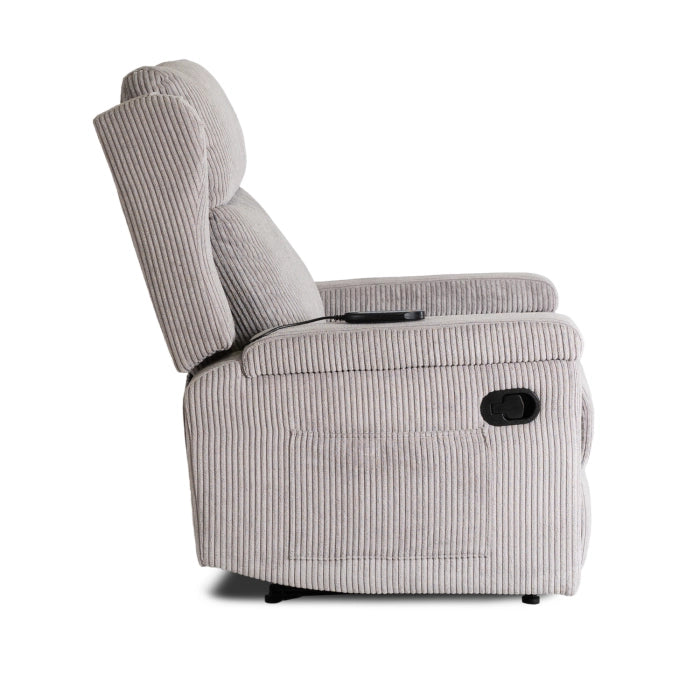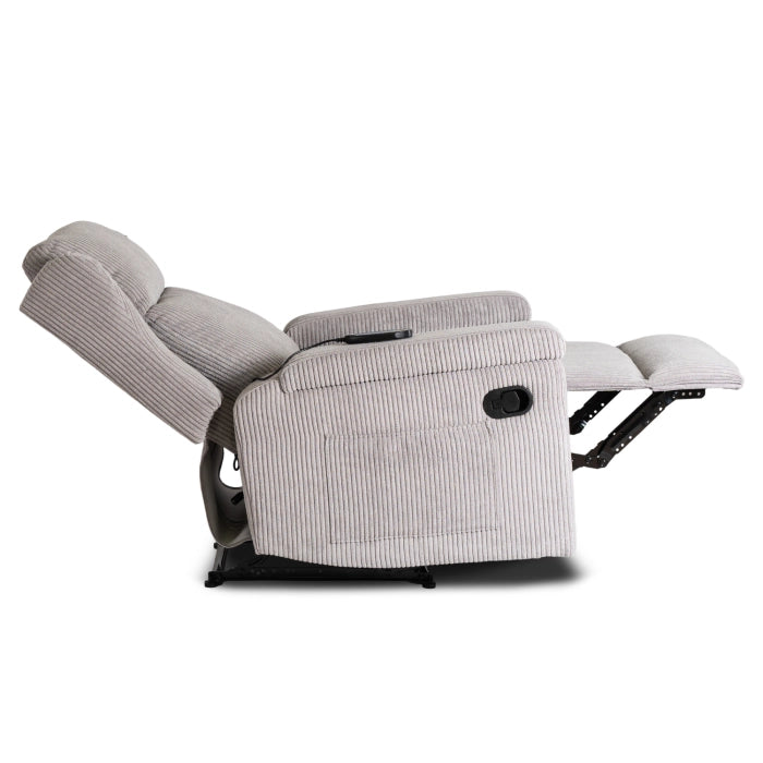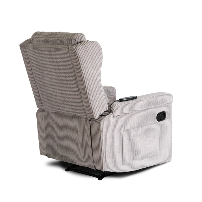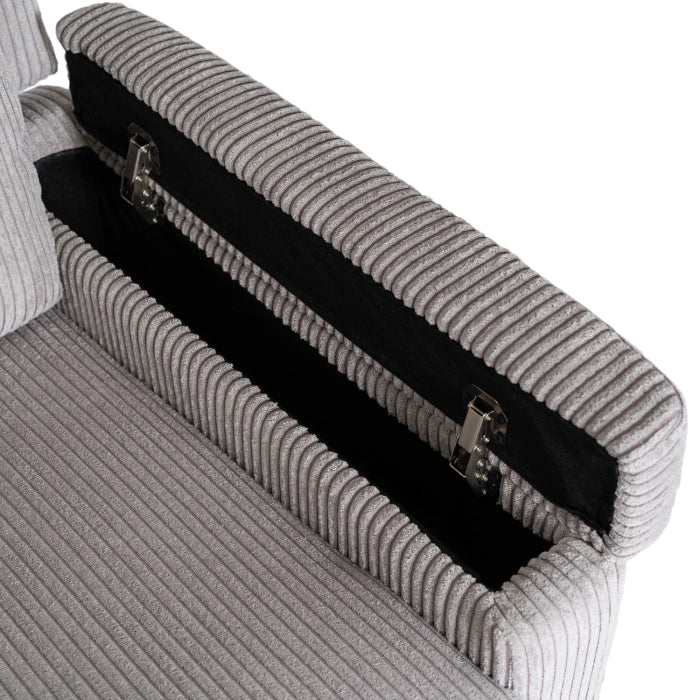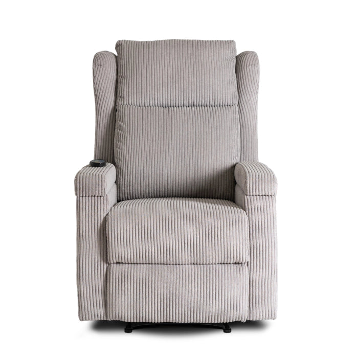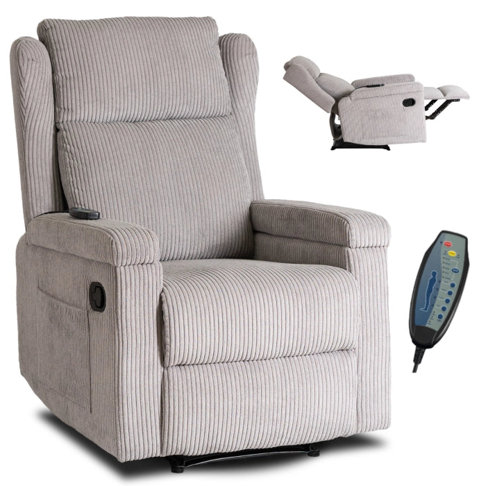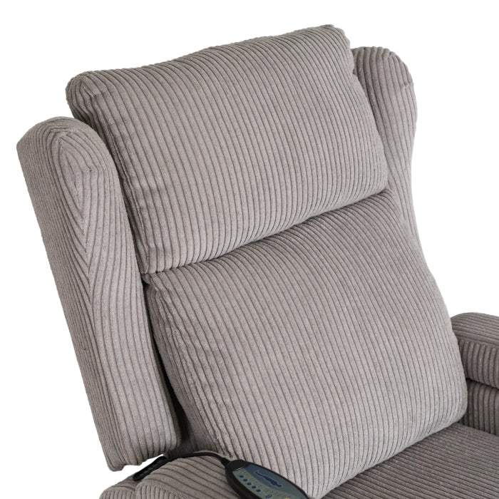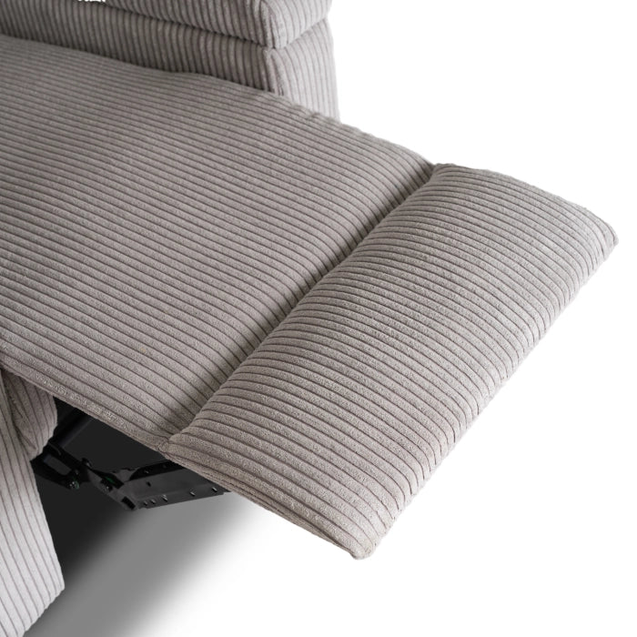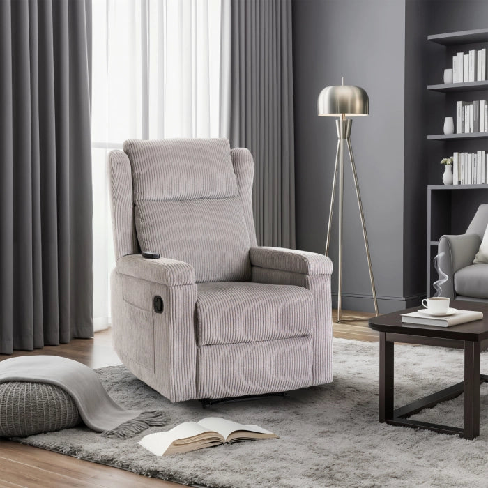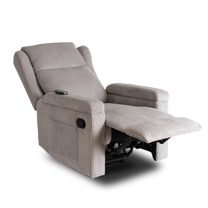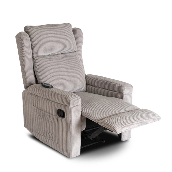 Fotelis SEBASTIAN, Pilkos spalvos masažinis poilsio fotelis su išskleidžiamu pakoju