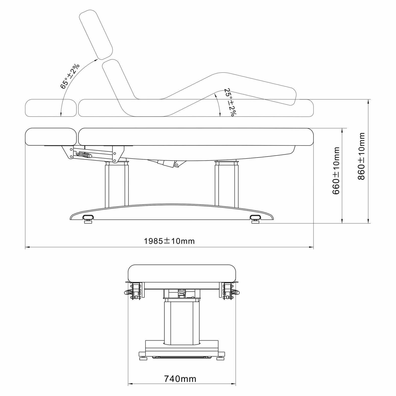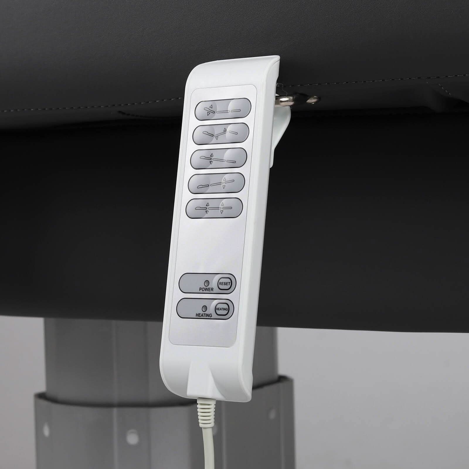 2. 4 patvarūs varikliai ir elektrinis reguliavimas rankiniu nuotolinio valdymo pulteliu leidžia nustatyti stalviršio aukštį ir galvos bei kojų atramos kampus.
