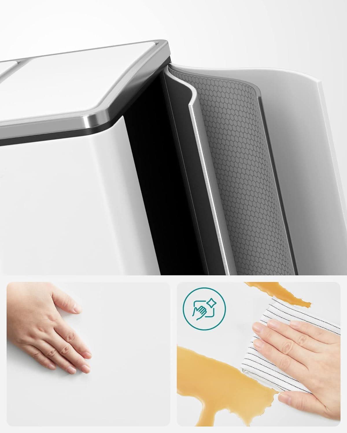 Taip pat šiukšliadėžę galime pastatyti kambaryje ar garaže, kur kaupiasi šiukšlės. Naudojamas paviršius, nepaliekantis pirštų atspaudų. Sandariai uždengti dangčiai neleidžia iš krepšelio sklisti nemaloniems kvapams.
