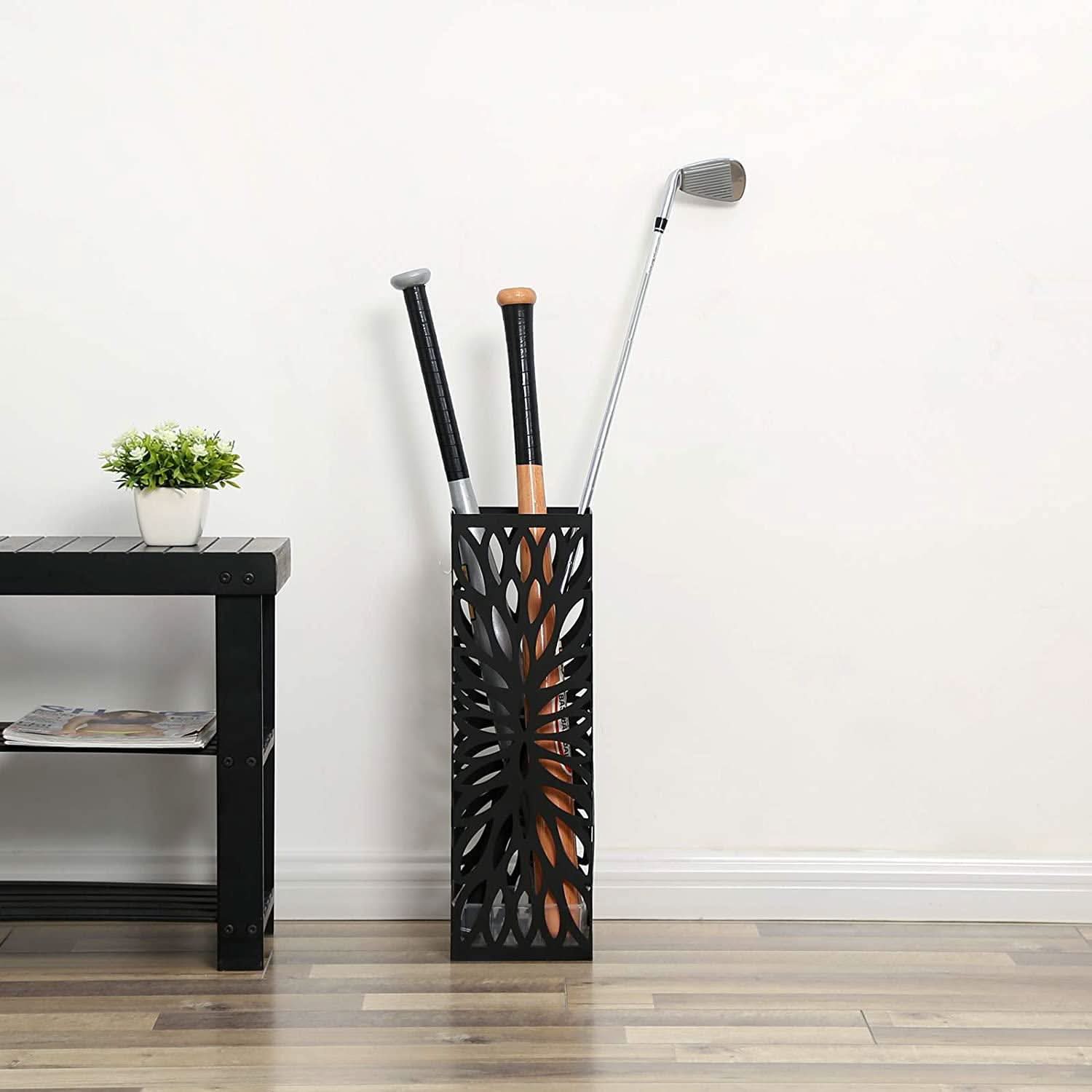Stove bus laikomi ne tik skėčiai, bet ir kiti daiktai, pavyzdžiui, šiaurietiško ėjimo lazdos. Metalinė konstrukcija užtikrina stovo stabilumą.