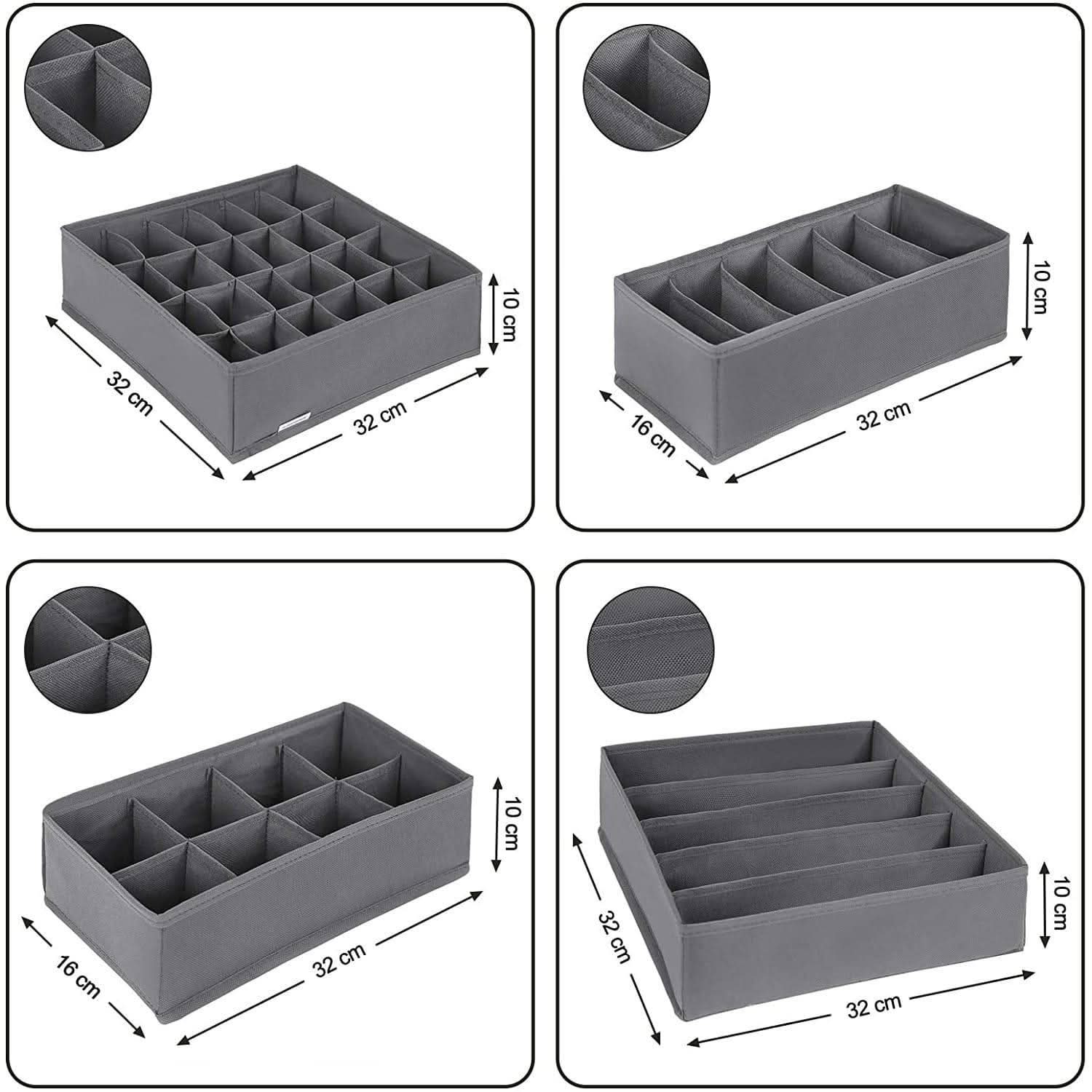 • Organizatoriaus matmenys su 5 skyreliais liemenėlėms: 32 x 32 x 10 cm (plotis x gylis x aukštis)