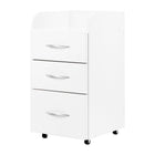 Spintelė su 3 stalčiais. Spintelėje yra sumontuoti ratukai, todėl ją galima lengvai perkelti.