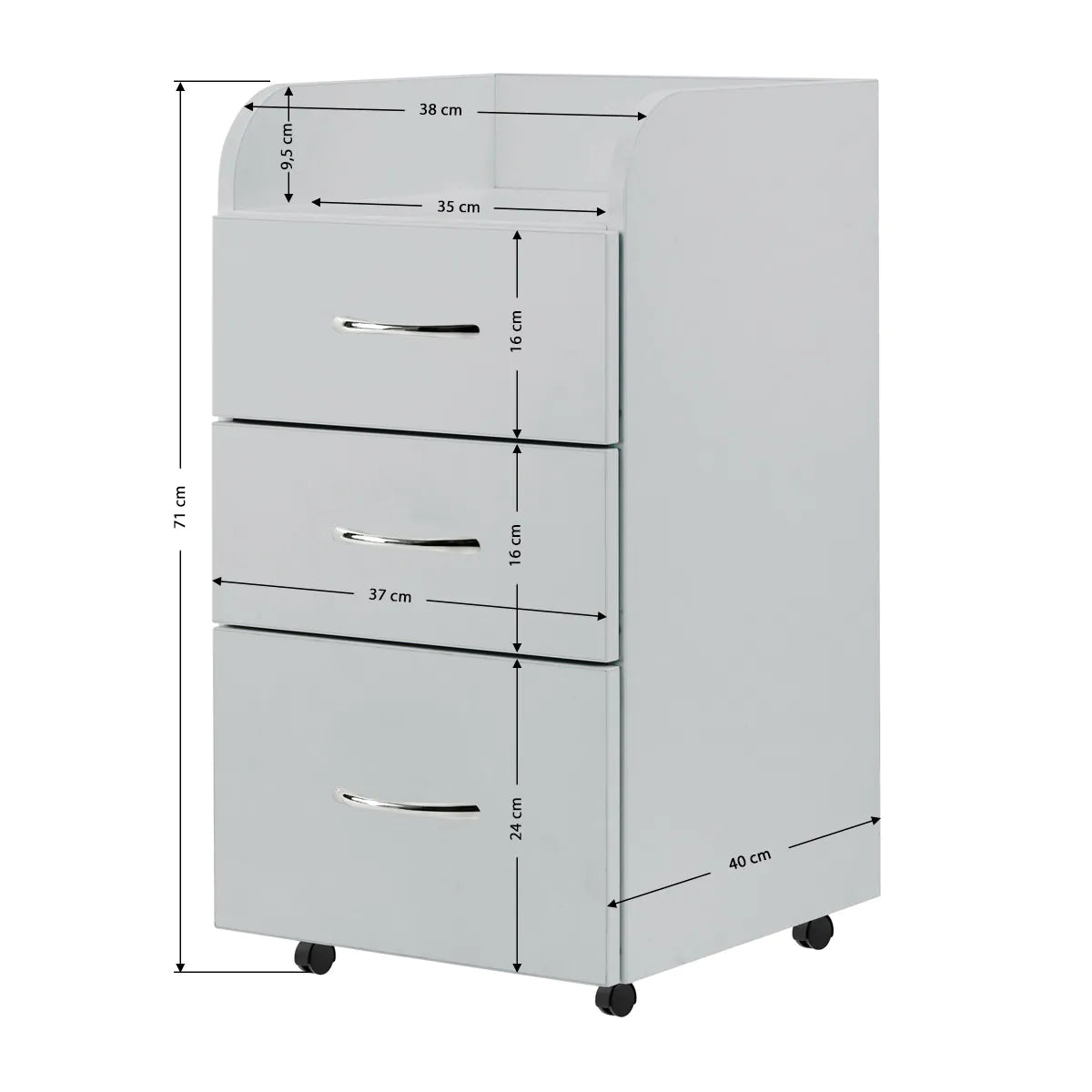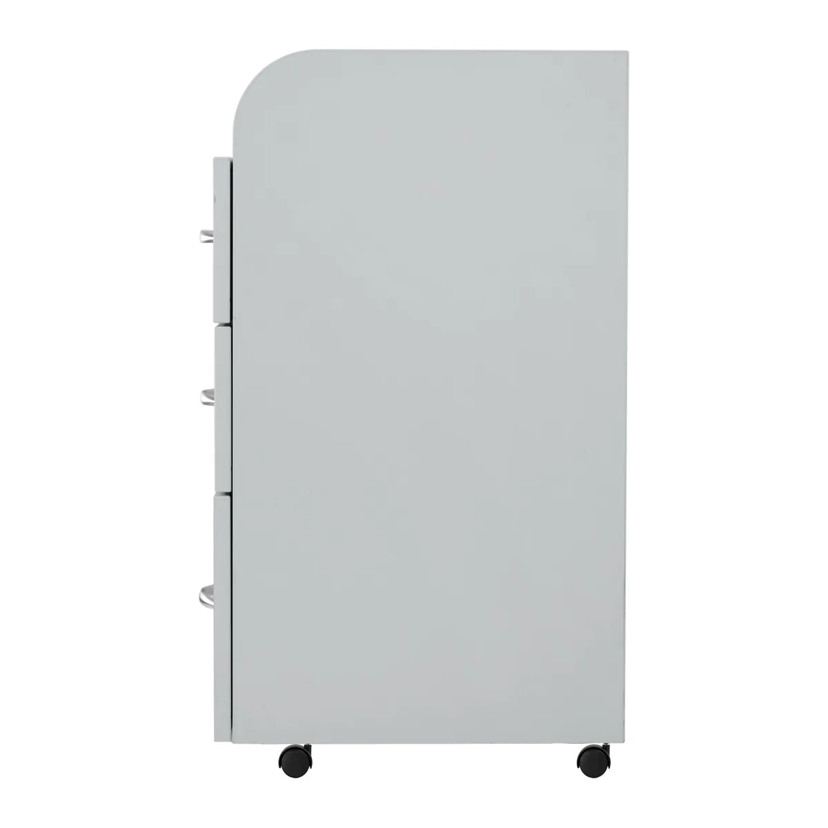 Trys įvairių dydžių stalčiai leidžia patogiai susidėlioti aksesuarus, įrankius ir kosmetikos gaminius. Baldo mobilumą užtikrina praktiški ratukai, iš kurių du yra su stabdžiais – tai palengvina spintelės perkelimą ir leidžia ją stabiliai pastatyti norimoje vietoje. Šis dizainas, sukurtas specialiai podologijos kabinetams, turi specialią vietą podologijos frezai su amortizatoriumi, o tai padeda ergonomiškai sutvarkyti darbo vietą ir padidina procedūrų atlikimo patogumą.