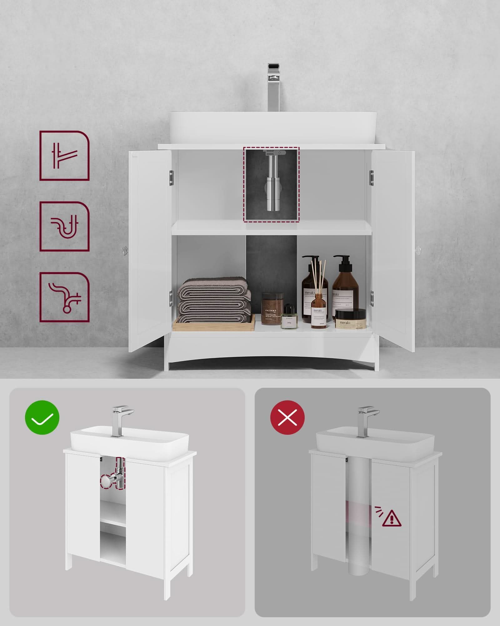 Dėl reguliuojamo aukščio vidinę lentyną galima pritaikyti pagal savo poreikius, o dėl gale esančios išpjovos galite lengvai pritvirtinti įvairių tipų sifonus.