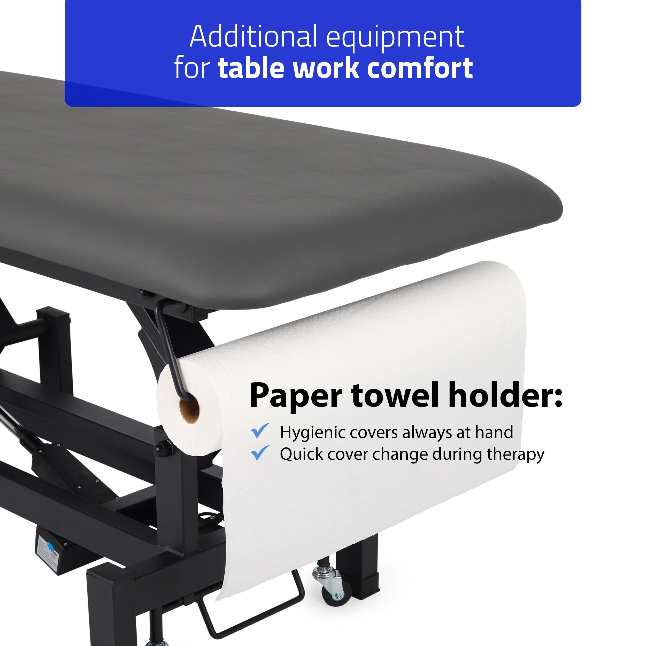 • Elektrinis aukščio reguliavimas: „Fortis 4 ERGO“ turi tylų, sertifikuotą elektrinį variklį, kuris leidžia tiksliai reguliuoti aukštį nuo 49 cm iki 86 cm, užtikrindamas komfortą tiek terapeutui, tiek pacientui.