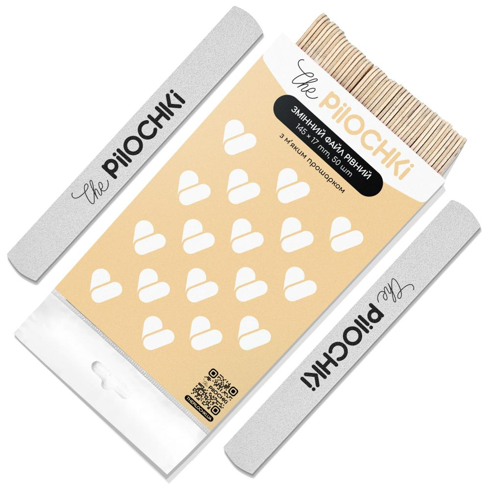 THE PILOCHKI Keičiami tiesios formos nagų dildės lapeliai 145 mm, 180 abrazyvumas, balti