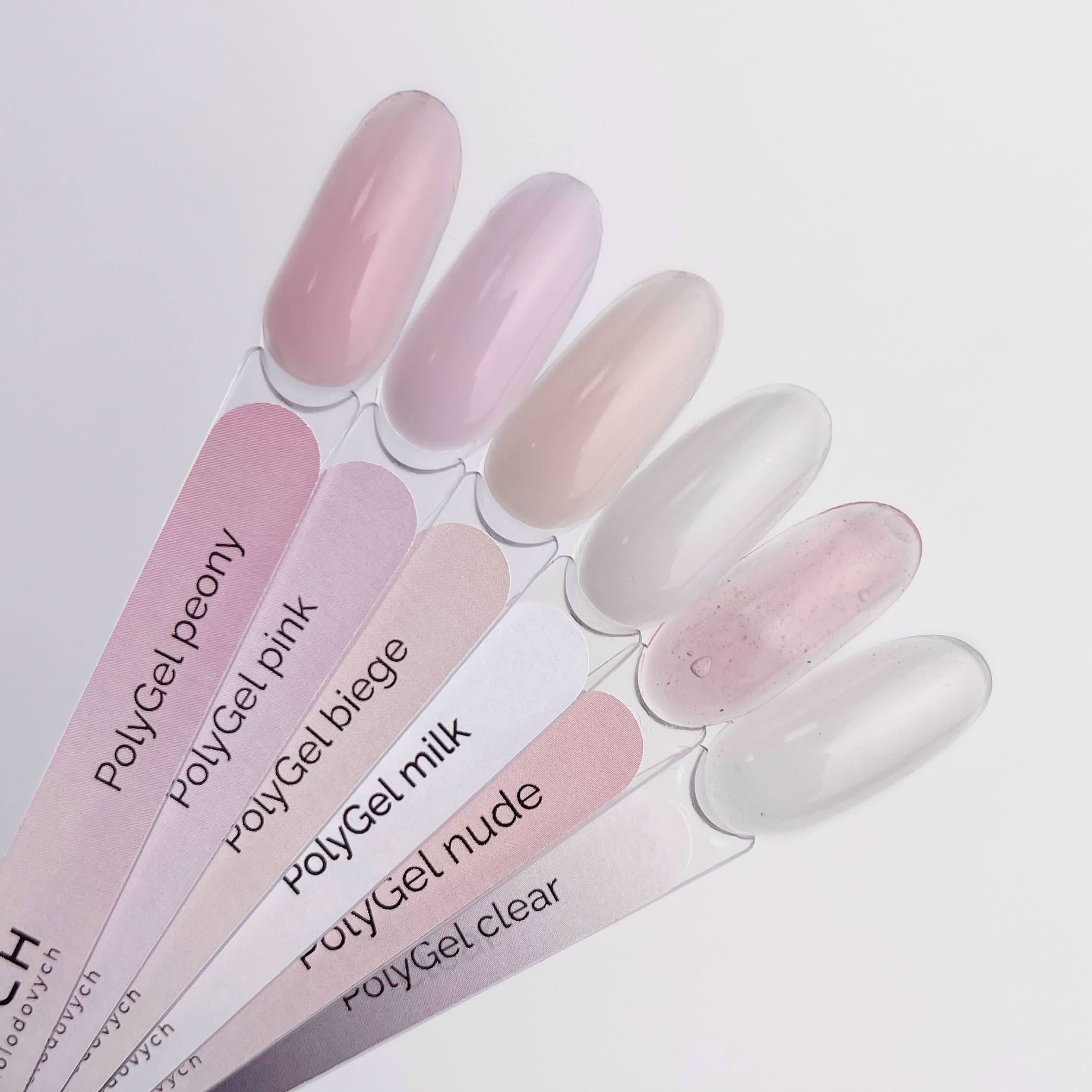 TOUCH POLYGEL – tai vienas iš lengviausiai naudojamų produktų, sukurtas iš akrilo ir gelio mišinio, sujungiančio geriausias abiejų sistemų savybes. Polygel yra universali medžiaga, tinkanti nagų stiprinimui, atkūrimui, pratęsimui, tūrinėms dekoracijoms kurti ir jų pritvirtinimui prie nago. Idealiai tinka klientams, linkusiems į alergijas. Tai statinė medžiaga, leidžianti dirbti su visais keturiais nagais tuo pačiu metu, o ne su kiekvienu atskirai. Jis yra draugiškas pradedantiesiems, nes leidžia dirbti ilgą laiką be nubėgimo. Lengvai dildinasi, nesikemša nagų freza. Polygel yra švelnus nagams, mažinantis spaudimą nagų plokštelei ir išlaikantis teisingą nagų architektūrą.