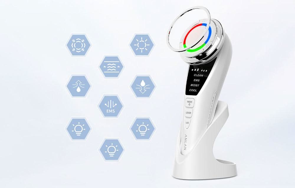 ANLAN ultragarsinis veido masažuoklis turi tiek daug funkcijų, kad pakeičia net 5 skirtingus odos priežiūros įrenginius. Galite naudoti prietaisą šviesos terapijai, giliam odos valymui, kompresams atlikti ar net veido liekninimui. Ir tai dar ne visos jo galimybės! Jonų ir aukšto dažnio vibracijų režimas užtikrins, kad odos priežiūros produktų maistingosios medžiagos pasiektų giliausius odos sluoksnius, todėl jūsų oda atrodys nepriekaištingai. Nepamirškite prieš naudojimą kruopščiai nuvalyti makiažo.