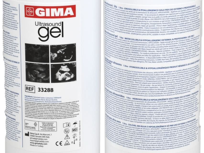 GIMA mėlynas ultragarsinis gelis – tai vandenyje tirpus, hipoalerginis gelis, skirtas naudoti su ultragarso, doplerio ir defibriliatoriaus įranga. Užtikrina tikslų ir nenutrūkstamą ultragarso bangų perdavimą į medicininę diagnostikos įrangą.