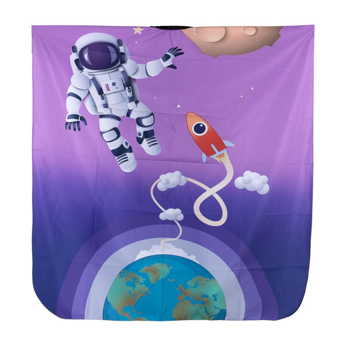 Apsiaustas pagamintas iš vandeniui atsparios medžiagos, kurią lengva valyti ir kuri nepraleidžia drėgmės, apsaugodama drabužius nuo sušlapimo. Reguliuojamas, patogus užsegimas leidžia puikiai pritaikyti apsiaustą. Matmenys ir itin paprastas sulankstymas labai palengvina laikymą. Be to, linksmas kosmoso tematikos paveikslėlis paverčia apsiaustą ne tik praktišku aksesuaru, bet ir įdomia atrakcija, paįvairinančia apsilankymą pas kirpėją.
