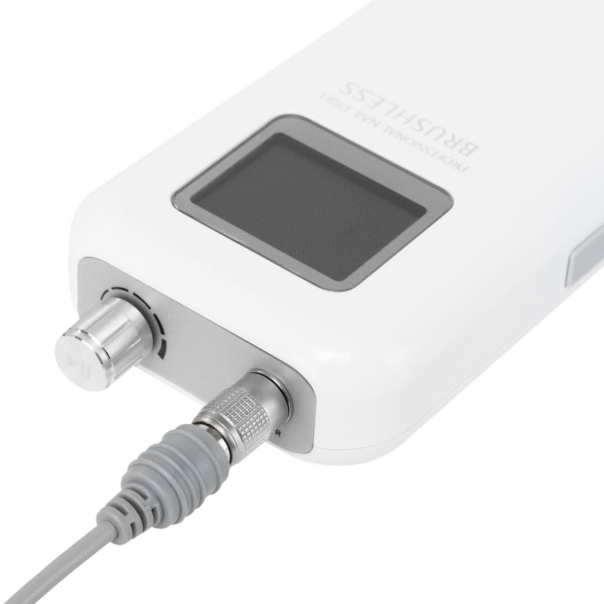Минималистичный пластиковый корпус в белых тонах сочетает в себе прочность с легкой очисткой и одновременно является привлекательным визуальным элементом рабочего места. Благодаря компактным размерам и легкому дизайну фрезер отлично подходит как для небольших рабочих мест, так и для транспортировки — идеально подходит для мастеров, предоставляющих мобильные услуги. Прорезиненные элементы на дне обеспечивают большую устойчивость и предотвращают смещение аппарата во время работы, что означает безопасную и удобную эксплуатацию.