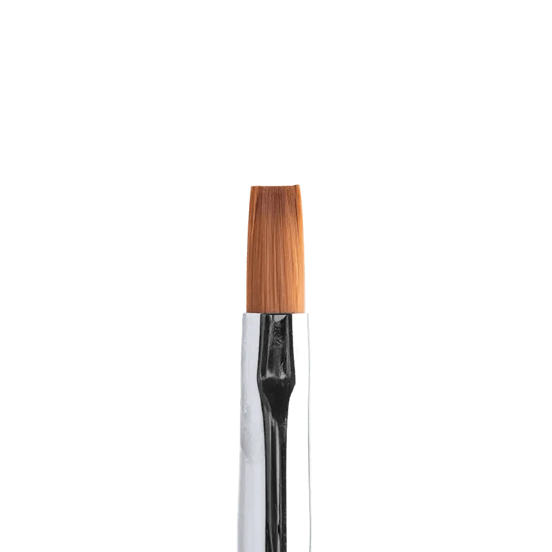 • Углы кисти позволяют наносить материал тонким слоем по бокам и у кутикулы, а прямой край облегчает создание ровной поверхности.