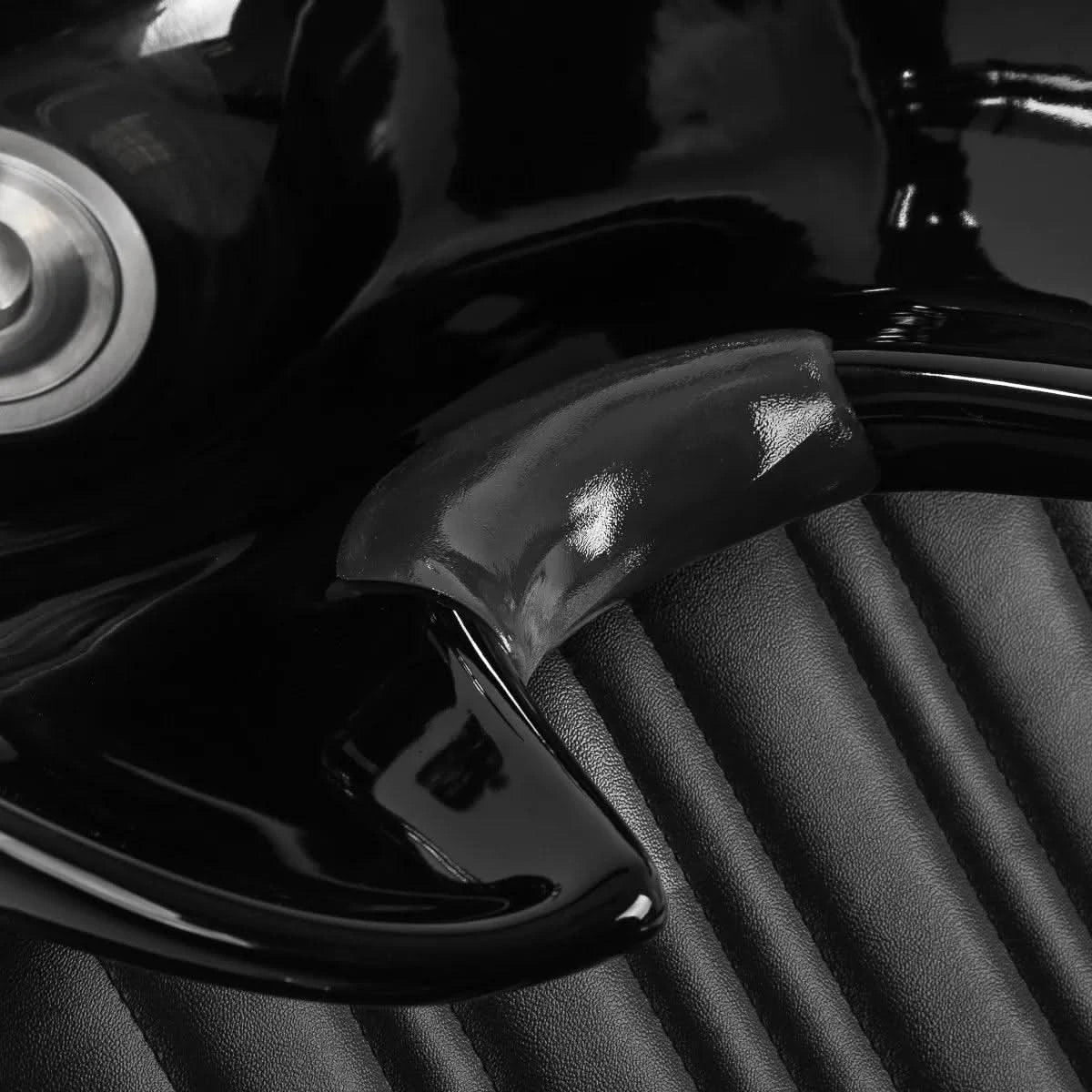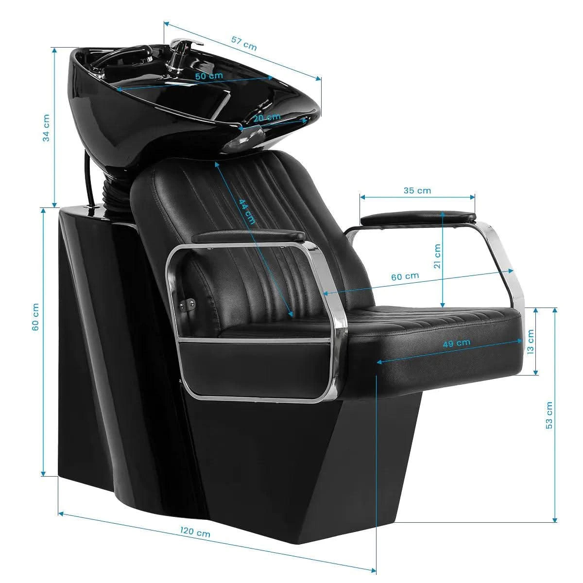 Профилированное сиденье, наполненное прочным пенополиуретаном, обеспечивает комфорт, а мягкие подлокотники способствуют правильному положению плеч клиента. Оптимально расположенная спинка обеспечивает отличную поддержку позвоночника. Обивка из черной искусственной кожи гарантирует долговечность и простоту ухода. Стильная прострочка обивки придает мойке характерный дизайн, вдохновленный автомобильной индустрией, подчеркивая ее впечатляющий внешний вид. Мойка комплектуется всеми необходимыми хромированными и черными креплениями, включая смеситель, душевую лейку и специальные шланги, обеспечивая полный комплект инструментов для работы.