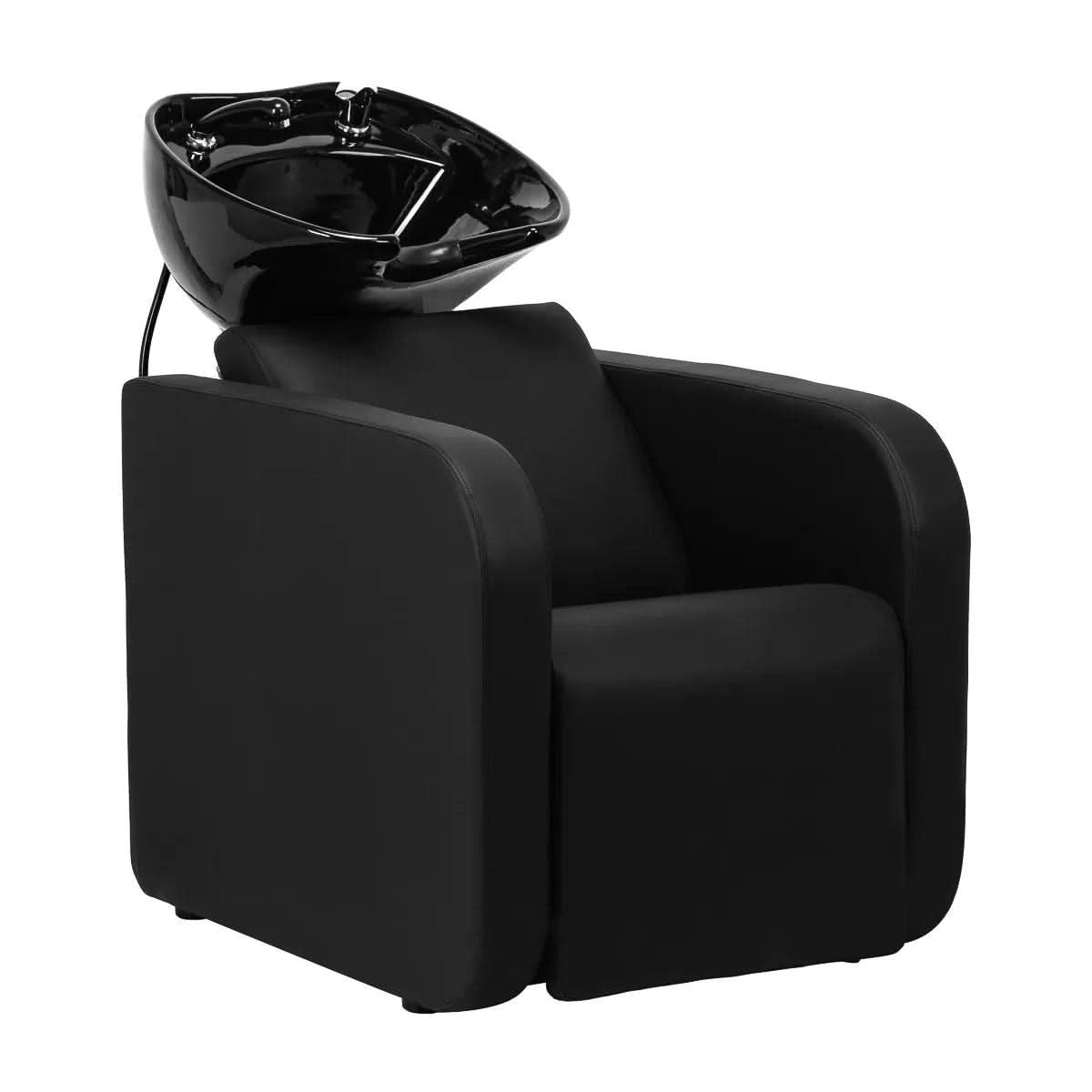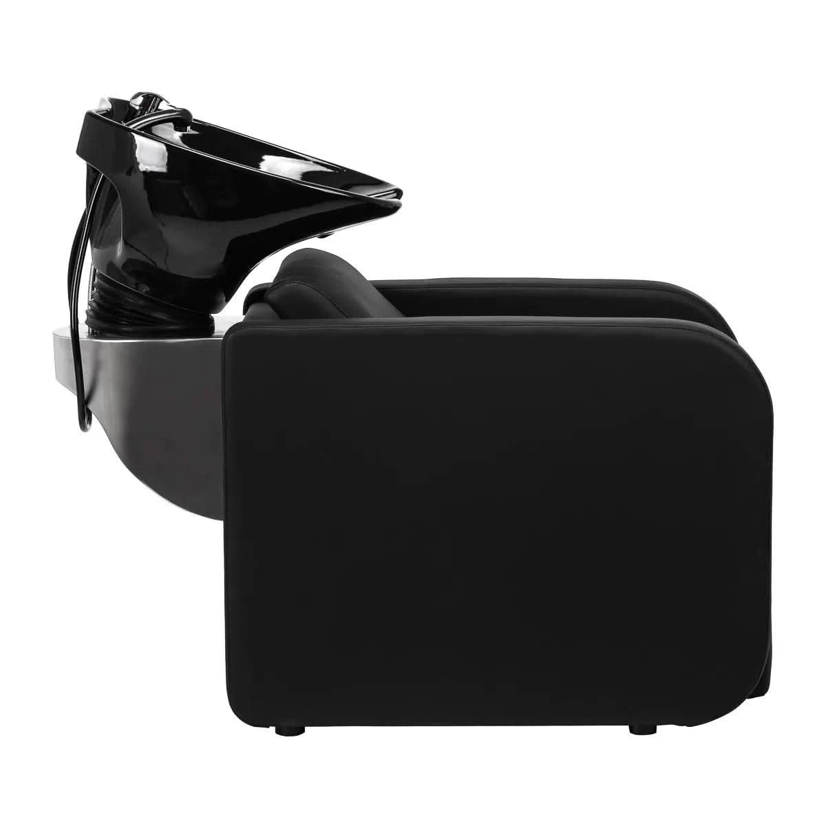 Глубокая керамическая раковина черного цвета позволяет комфортно и эффективно выполнять различные парикмахерские услуги, предотвращая чрезмерное разбрызгивание воды и используемых средств. Благодаря используемому материалу раковина прочная, устойчива к пятнам и царапинам, а также очень легко моется. Правильно спрофилированный бортик и наклонная спинка обеспечивают опору и комфорт во время мытья головы, а удобная пластиковая накладка черного цвета предотвращает дискомфорт клиента, связанный с прохладой керамической поверхности.