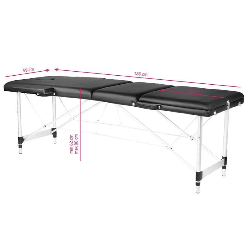 Раскладной массажный стол FIZJO, 3 части, на алюминиевых ножках, цвет черный.